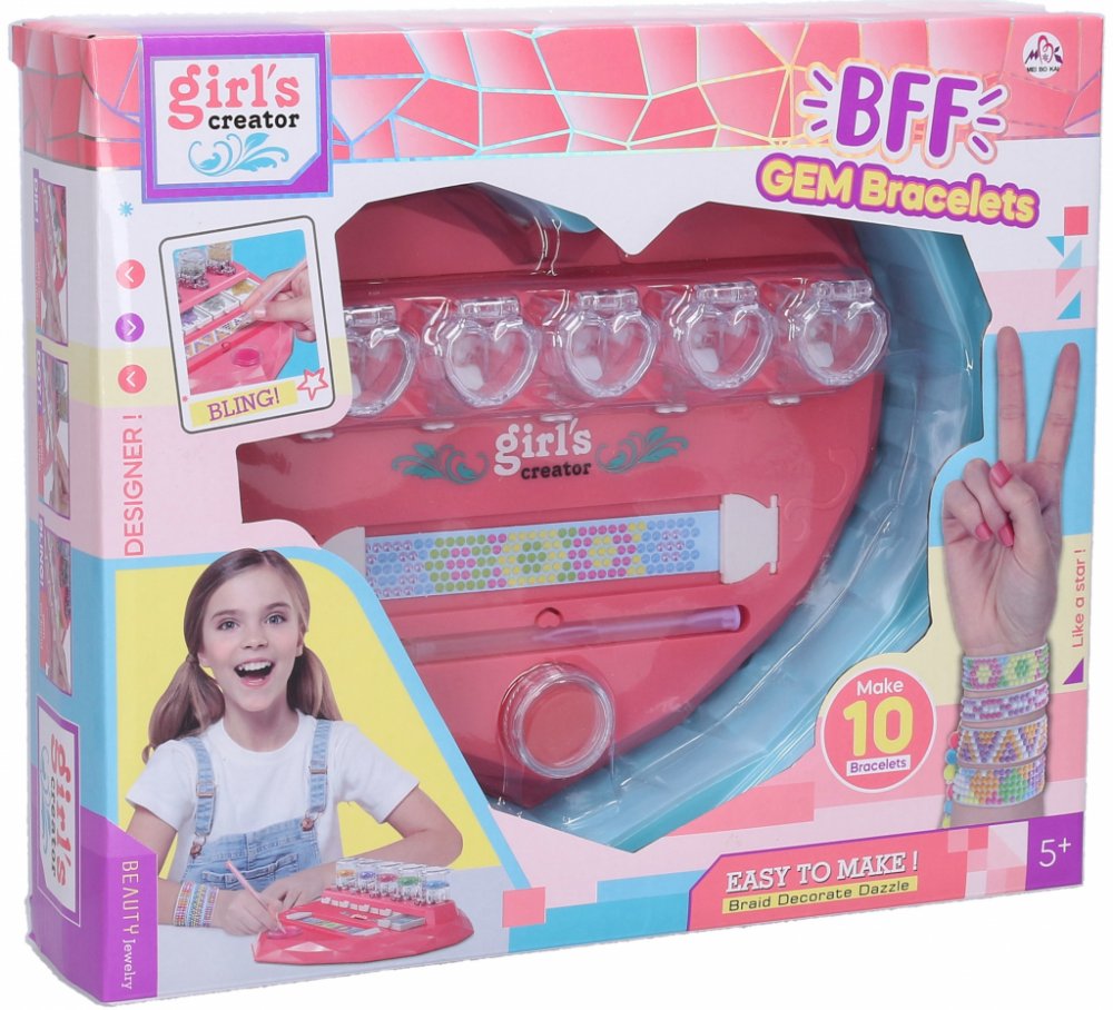 Tvorba náramků 10 ks. Obsah - pracovní deska, 10 pásek, 2 šablony, korálky, barevné provázky, pero na korálky a další. Součástí obrázkový návod.