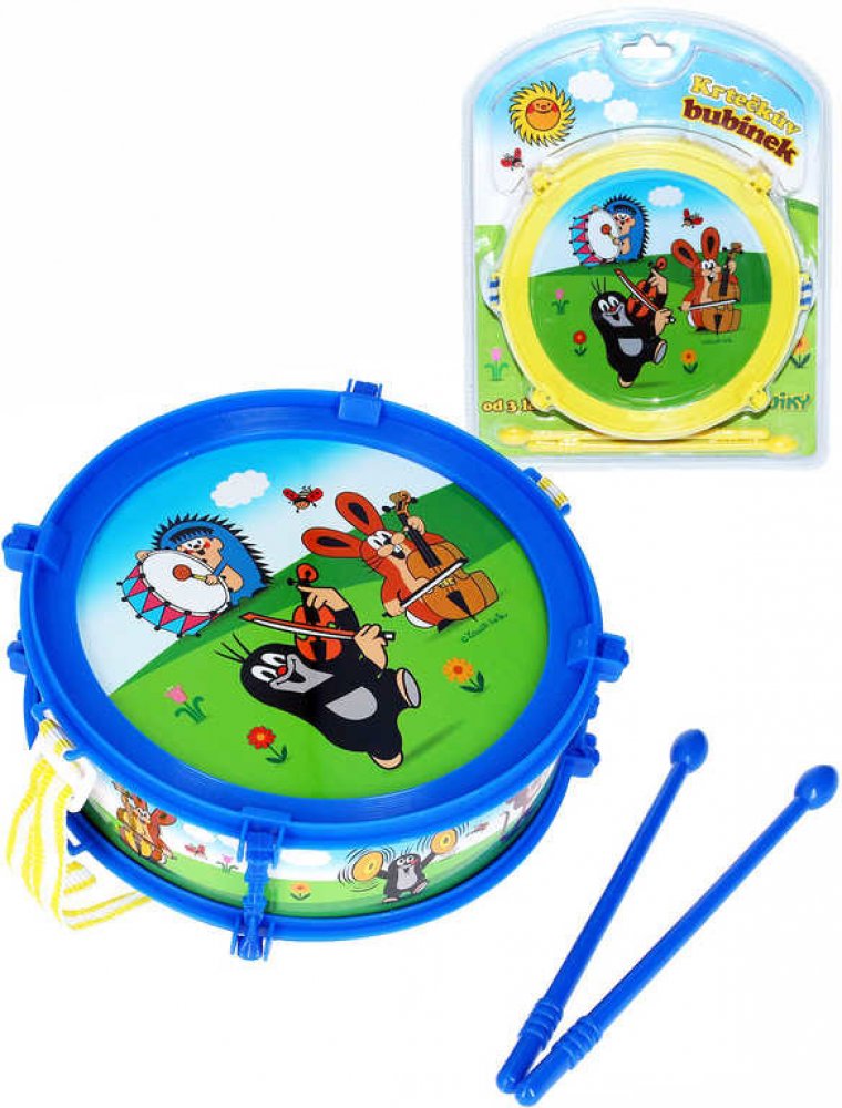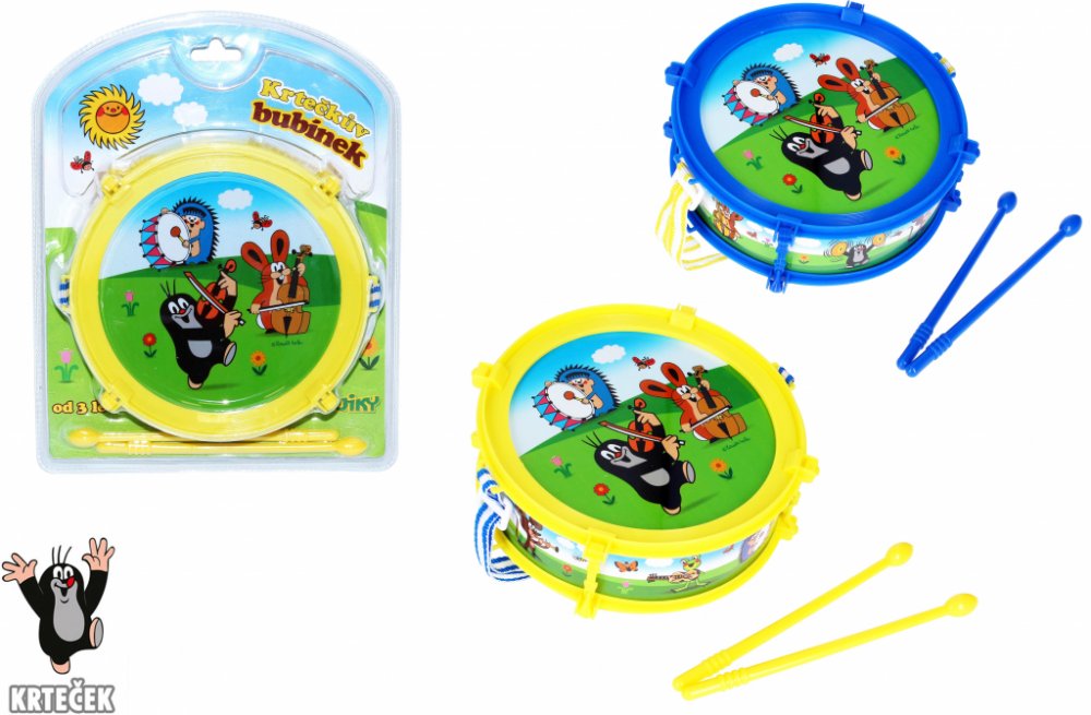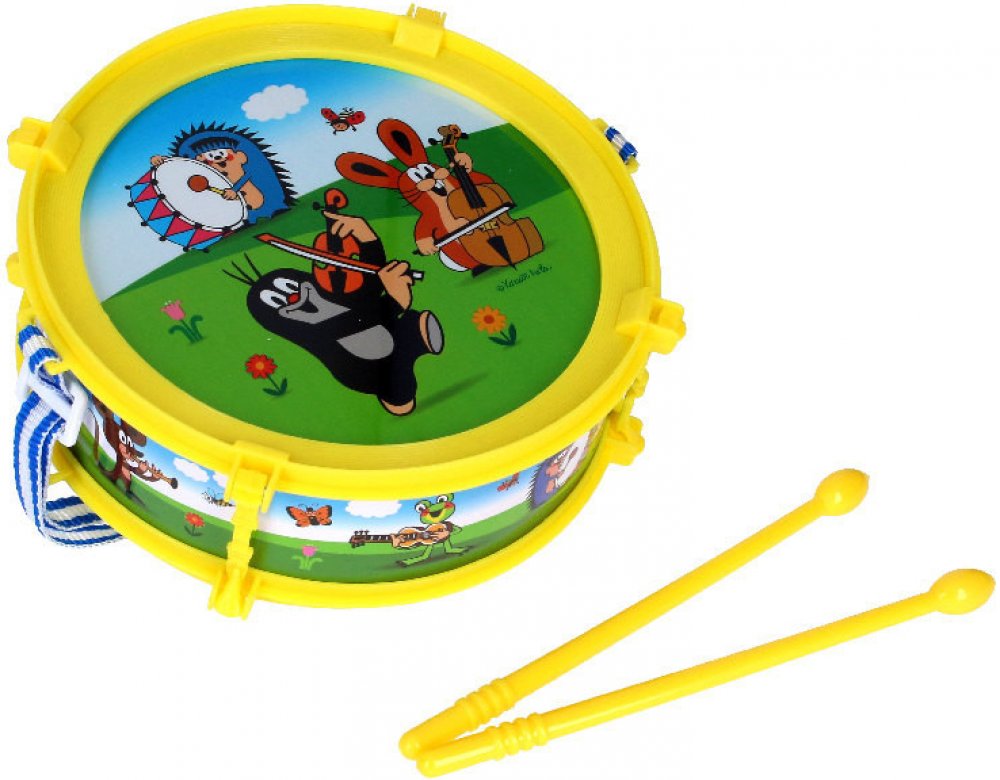 Bubínek s popruhem a paličky pro malé bubeníky s motivem Krtečka.