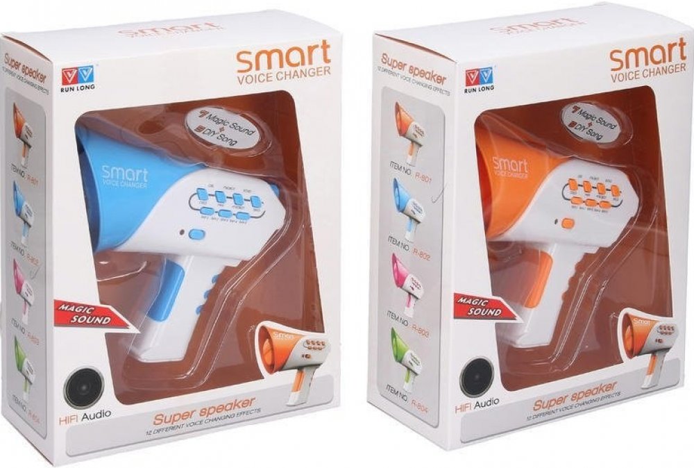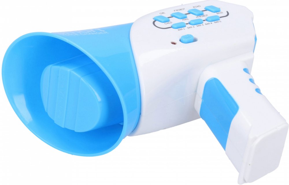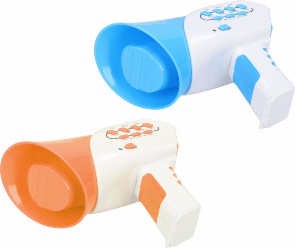 2 ast - oranžová, modrá Pořiď si megafón a užij si společně s kamarády spoustu magické zábavy! Který hlas si vybereš? Chceš mluvit jako dítě nebo třeba robot? Volba záleží jen na tobě, na výběr máš ze 12 možností. Megafón vydává také zvukové efekty.