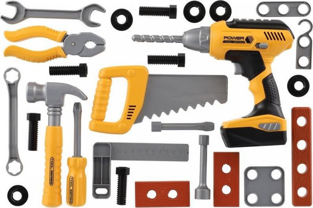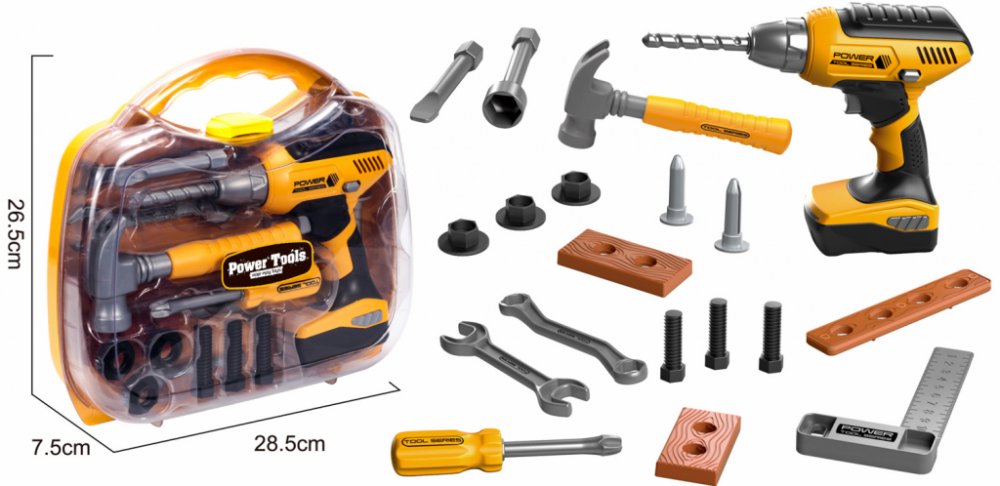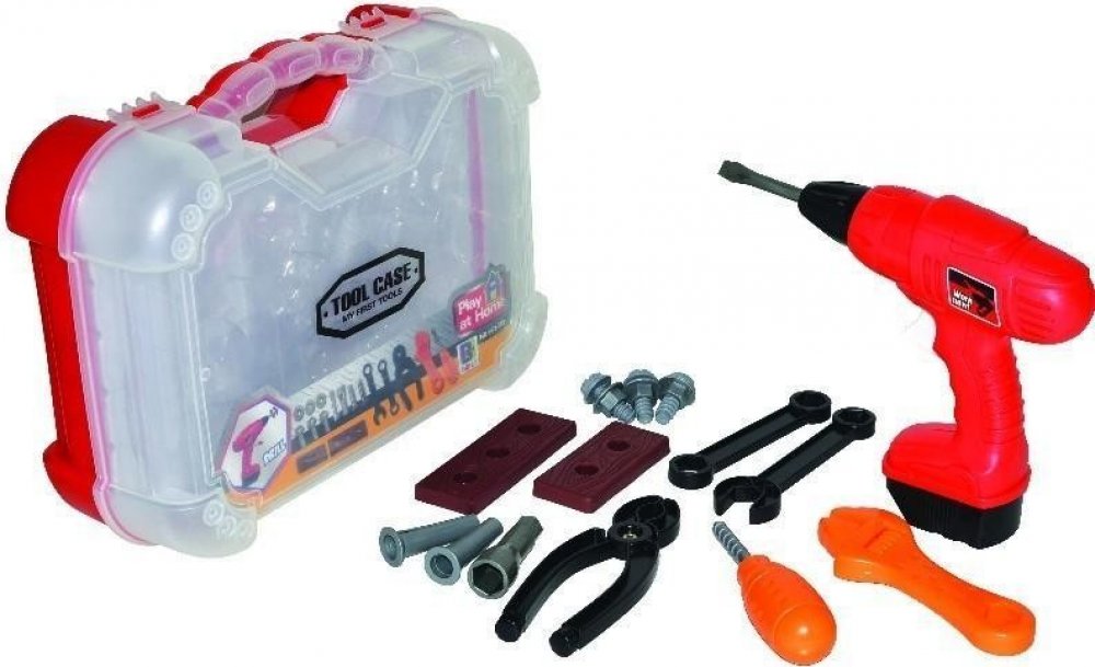 Funkční aku vrtačka/šroubovák na mechanický pohon, hasák, klíče, kleště a sada šroubů potěší každého S nářadím v kufříku půjdou opravy domácnosti jako po másle Funkční aku vrtačka/šroubovák na mechanický pohon, hasák, klíče, kleště a sada šroubů potěší každého malého kutila. Devatenáctidílná sada v praktickém pevném plastovém kufru. Velikost: 32 x 25 cm