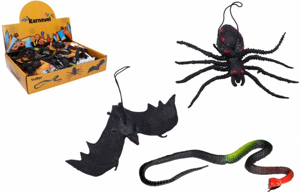 *gumový černý netopýr *po pověšení se za připnuté poutko bude třepotat*nezbytná dekorace pro halloween a čarodějnickou výzdobu Gumový černý netopýr se po pověšení za připnuté poutko bude třepotat. Zábavná dekorace pro halloween a čarodějnickou výzdobu.