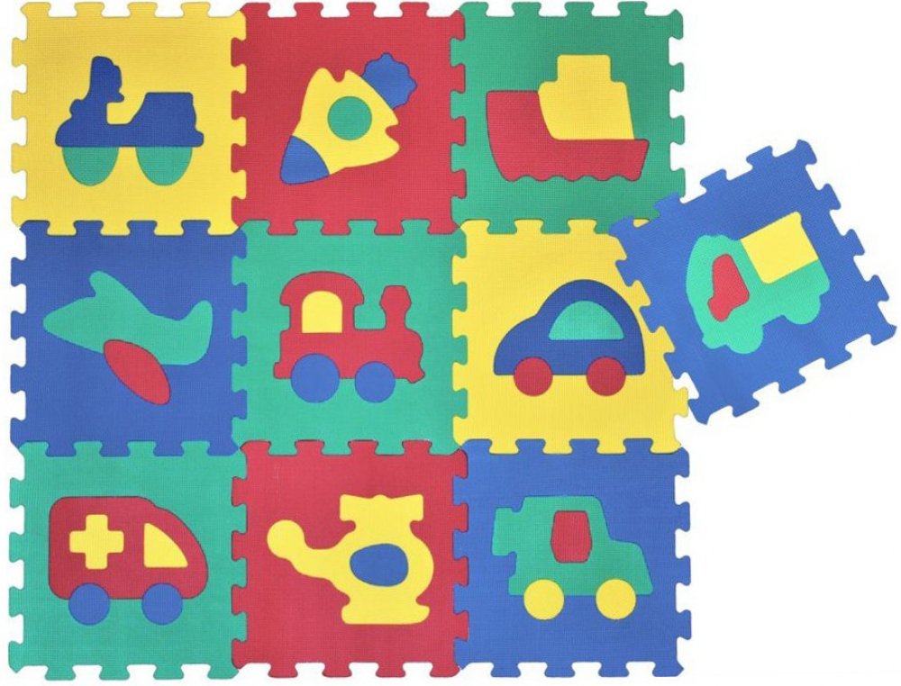 Pěnová podložka rozvíjí senzomotorické schopnosti, myšlení, kreativitu a soustředěnost. 10 dílů s dopravními prostředky je vyrobeno z bezpečného materiálu, který je měkký, omyvatelný, lehký, odolný a zároveň skvěle izoluje a tlumí hluk