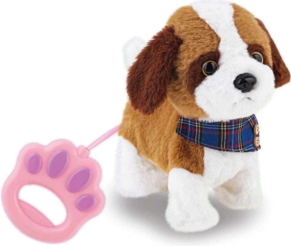 Pes chodící s efekty na kabel. Velikost 22 cm. Kabel s ovladačem se připojuje do otvoru na krku. Chůze, štěkání, vrtění ocasem, pohyb hlavy.