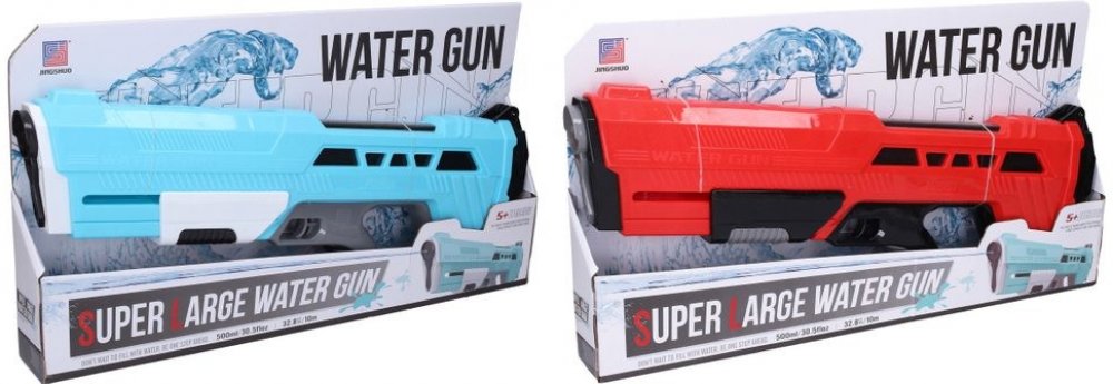 Vodní puška. Délka 52 cm. Střelba pumpováním. 2 varianty - modrá, červená. Ve vodě nebo na souši, všude číhá nebezpečí. Buďte připraveni a mějte po ruce svou vodní pistoli. Jen tak můžete nepřítele překvapit jako první. Napumpujte vodu a střílejte. Díky velkému zásobníku budete mít dostatek munice. Vodní pistole Vám zajistí spoustu zábavy nejenom v létě.