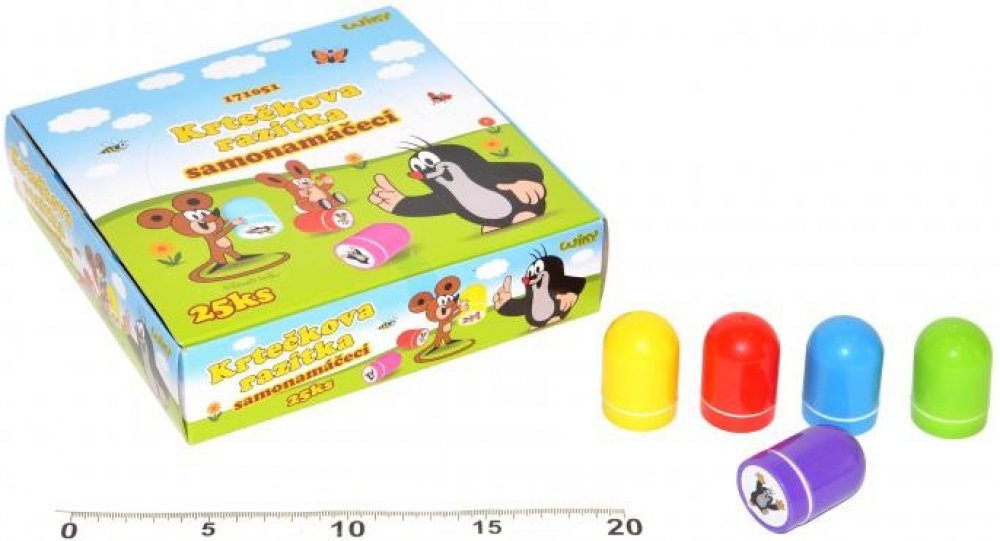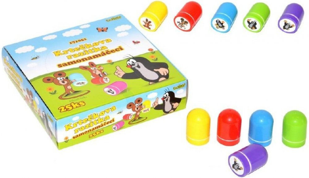 Dětské samonamáčecí razítko Krtek, 5 barev. Samonamáčecí uzavíretelná razítka s motivem Krtka a jeho přátel. Podporují kreativitu a motoriku vašich dětí.