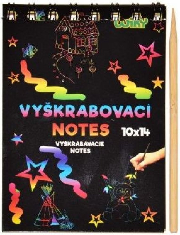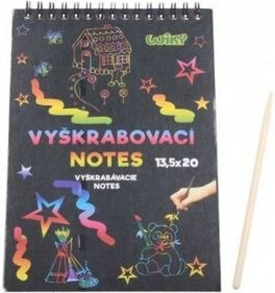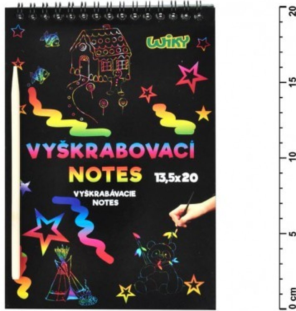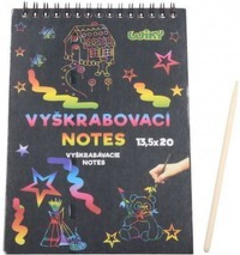 Kreativně se vydovádějte na vyškrabovacím notesu, který má rozměry 13,5x20 cm. Na jednotlivých listech, můžete pomocí vyškrabovacího pera vytvářet různé pestrobarevné obrázky.
