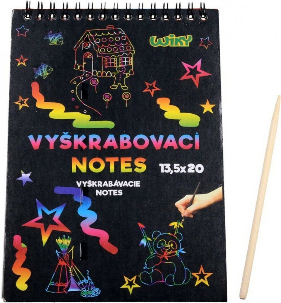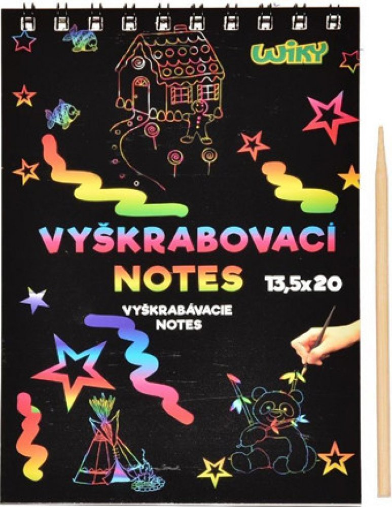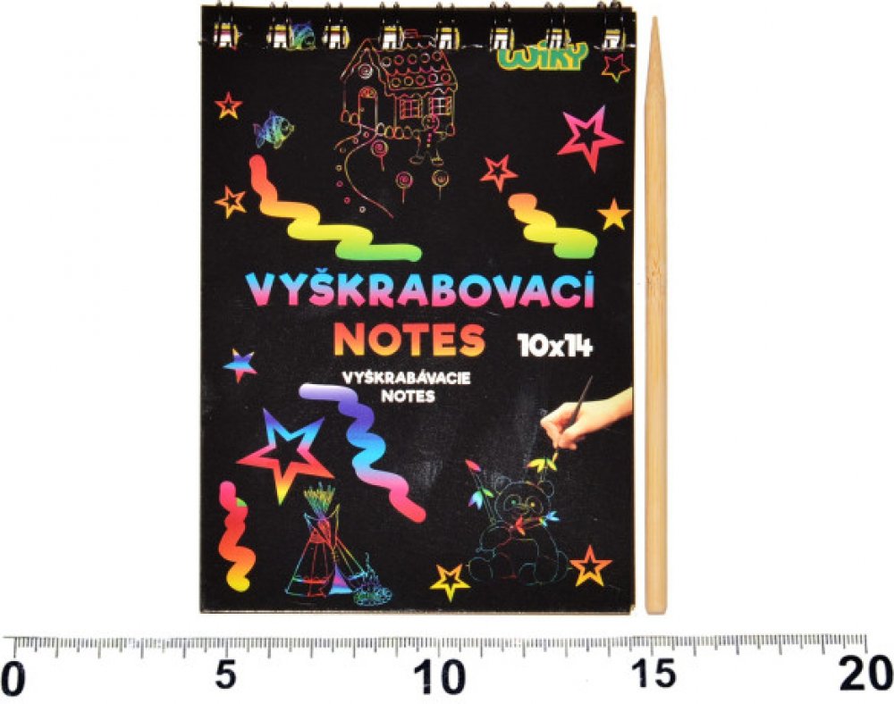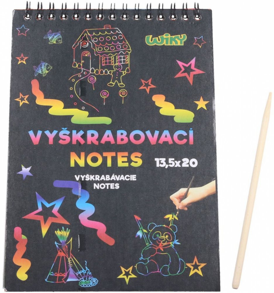 Kreativně se vydovádějte na vyškrabovacím notesu, který má rozměry 13,5x20 cm. Na jednotlivých listech, můžete pomocí vyškrabovacího pera vytvářet různé pestrobarevné obrázky.