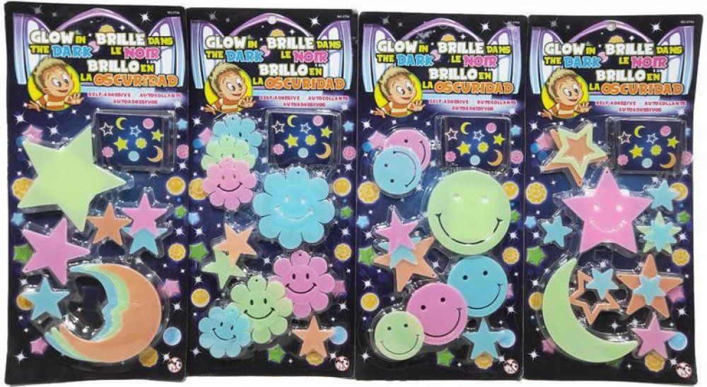 Vyzdob si svůj pokojík svítícími tvary. Noční obloha s hvězdami a měsícem, usmívající se kytičky nebo svítící smajlíci. Každý podle svého vkusu. Svítící tvary. 4 varianty. Svítí ve tmě.Cena je uvedena za 1 ks. Dodáváme dle aktuální skladové dostupnosti. V případě zájmu o konkrétní typ, prosíme o uvedení do poznámky v objednávce.