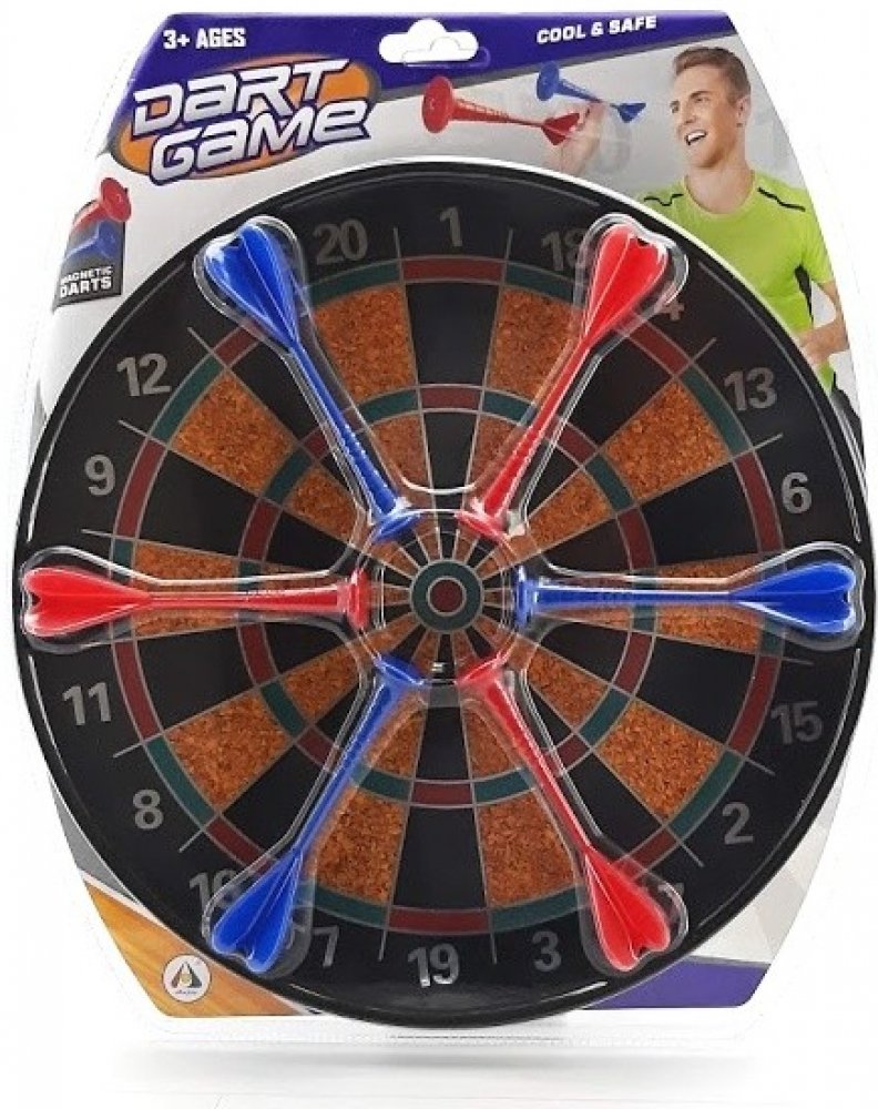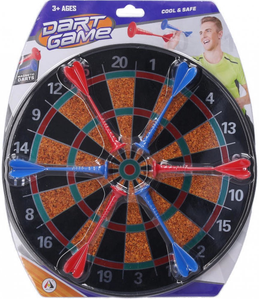 Terč magnetický se šipkami. Průměr terče 30 cm. 6 šipek. Zahraj si šipkový turnaj společně se svým kamarádem! Kdo má lepší zásah a zvítězí? Oblíbená hra procvičí tvůj postřeh a zručnost! Balení obsahuje magnetický terč a 6 plastových šipek, které zaručí bezpečnou hru. Velikost: 30 cm Doporučený věk: od 3 let