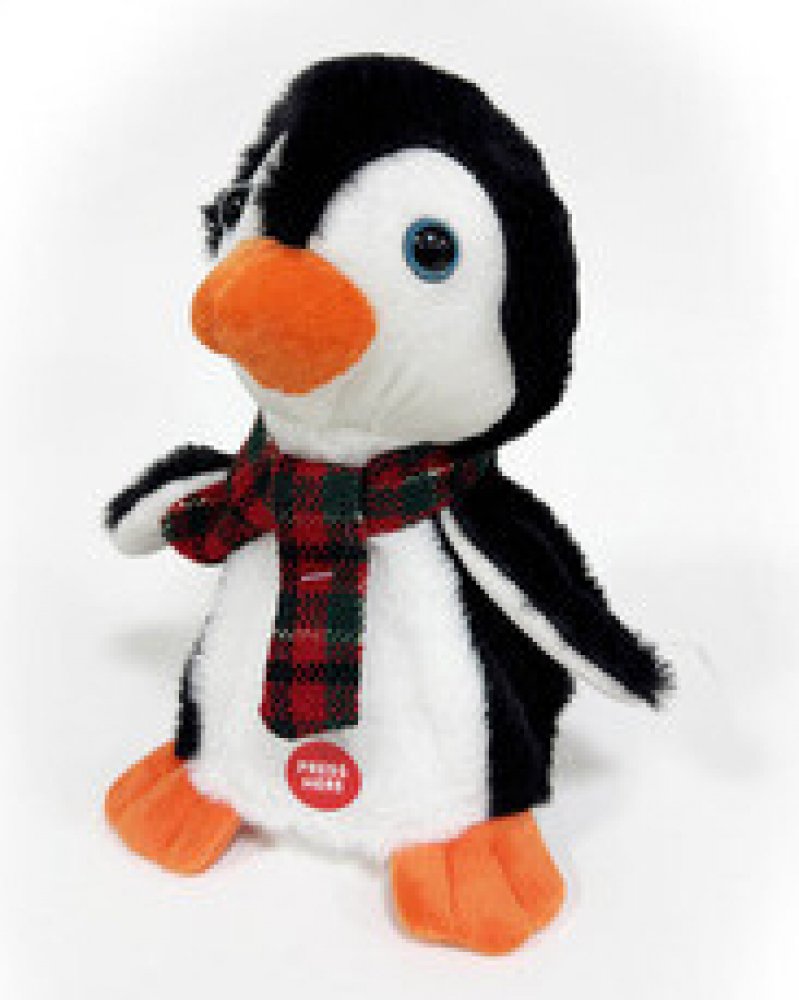 Klíčové vlastnosti opakujícího plyšového tučňáka Wiky, 19 cmRoztomilý tučňák z příjemného plyšového materiáluVhodné pro děti od 2 letTučňák opakuje zvukové efekty, tančí a zpíváTlačítko zapnutí na bříškuBaterie 3× AAA součástí baleníRozměry 13 × 11 × 19 cm