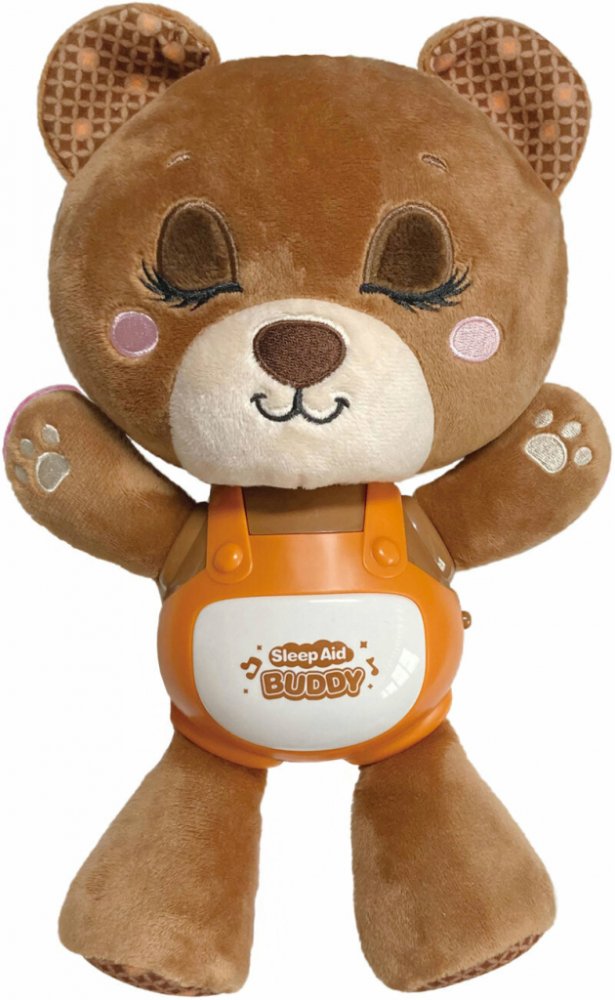 Usínáček medvěd. Velikost 29 cm. baterie 3xAAA nejsou součástí. Přepínač on/off na boku zvířátka. Stisknutím bříška se spouští zvukové efekty- 1. stisknutí ukolébavka, 2. stisknutí uklidňující hudba, 3. stisknutí chrápání, 4. stisknutí pouze světlo, 5. stisknutí vypnutí, 6. stisknutí - proměnlivý režim.