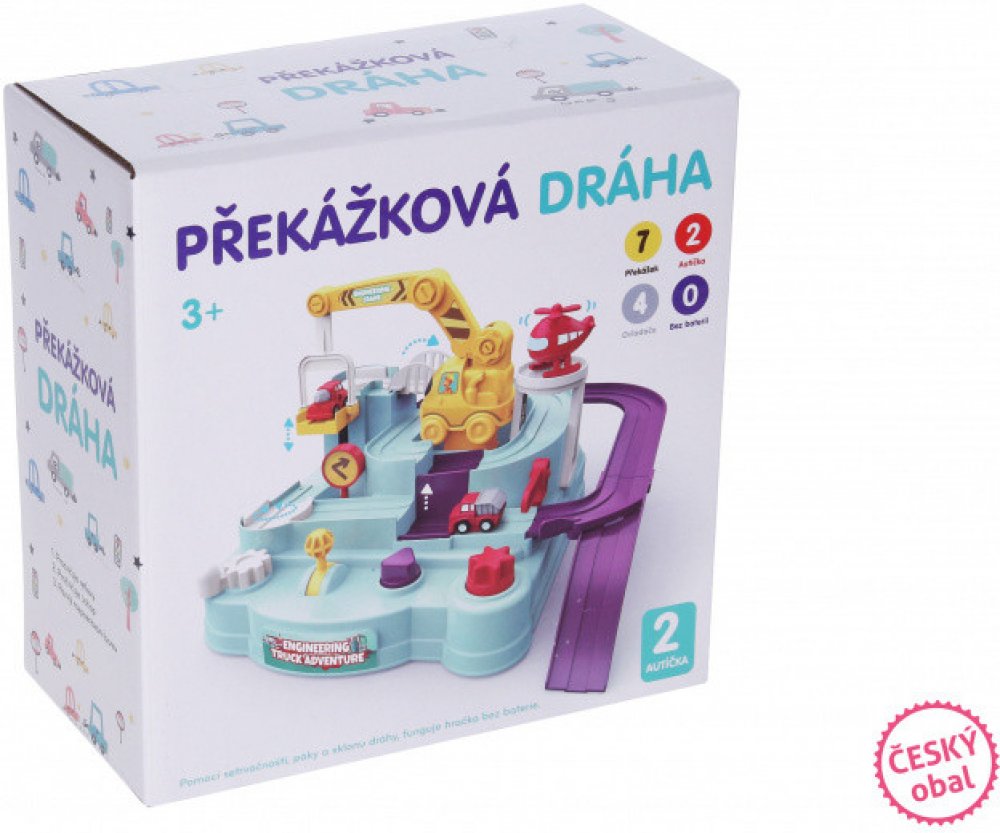 Překážková dráha bude opravdovým zážitkem pro malé dobrodružné průzkumníky. Vypadá to jako snadný úkol? To je jen zdání. Podívejte se na to a uvidíte sami. Při cestování po trati na vás čeká řada překážek. Vyzvěte každého a staňte se šampiónem. Můžete si být jisti, že zábava neskončí, je to hračka, která přiláká nejen děti na dlouhé hodiny. Hra s dráhou není jen fantastické dobrodružství, ale také formou podpory správného vývoje dítěte Rozměry 24x24x17 cm. Obsah balení: 4 ovládací prvky (kolečka, páčky). 2 auta. Doporučený věk: 3+
