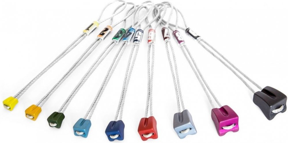 Duralový vklíněnec prohnutého tvaru s pevnostním ocelovým lankem a barevně odlišenými segmenty. Vklíněnce jsou vyrobeny v mírně prohnutém tvaru, což zaručuje jejich snadné, rychlé a bezpečné zakládání do různých typů spár. Velikost spáry od 10 do 24,5mm. Sada obsahuje 9 kusů vklíněnců.