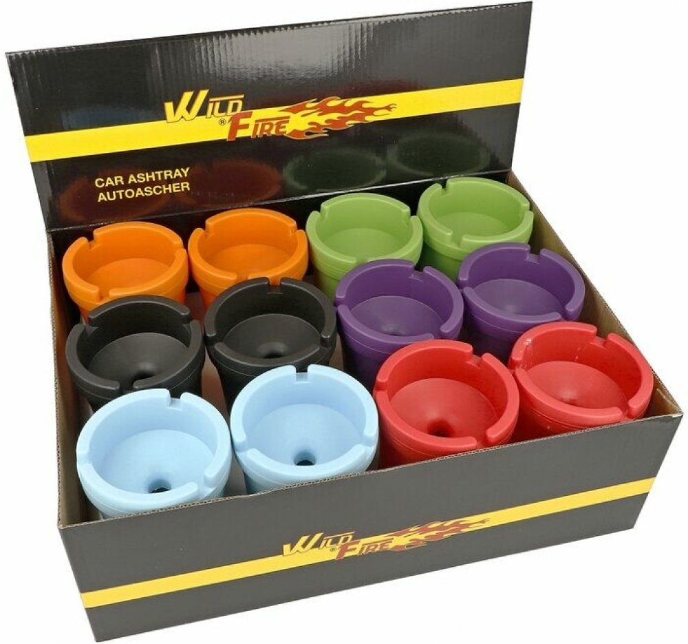 Cigaretový popelník do auta Wildfire Colored. Plastový popelník na cigarety je v různobarevném matném provedení. Díky jeho konstrukci - speciální horní části se Vám nestane, že popel bude okolo popelníku. Popel padá otvorem ve středu víčka do nádoby a tím se bezpečně udrží uvnitř. Současně víčko popelníku slouží jako držák na 3 cigarety, který jistě využijete nejen při jízdě. Popelník je lehce umí...