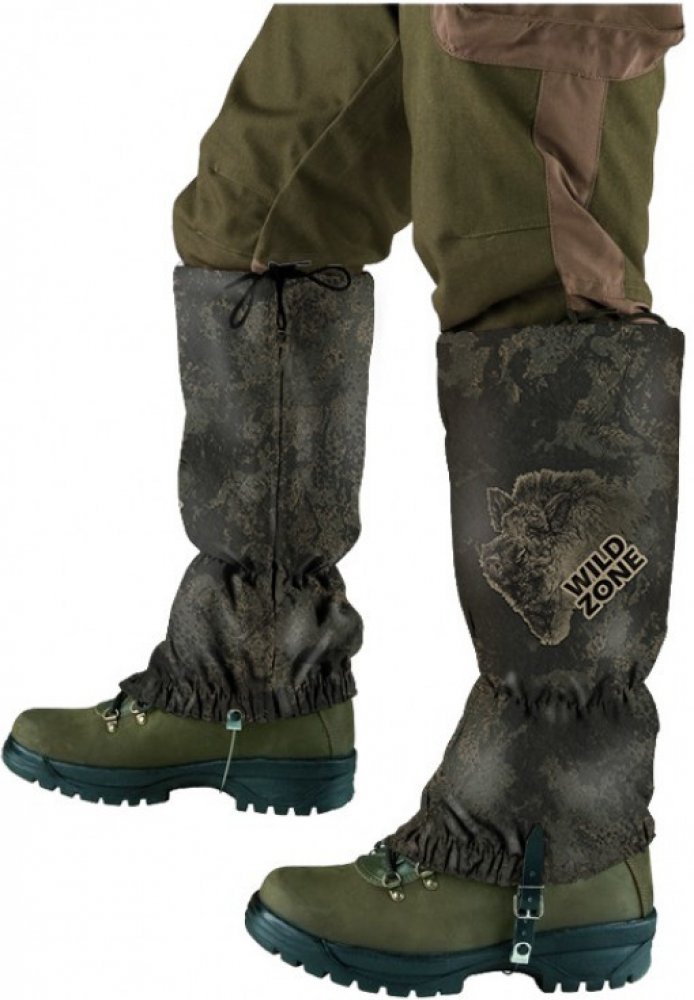 Návleky na nohy v hnedé barvě s motivem divočáka od značky Wildzone.