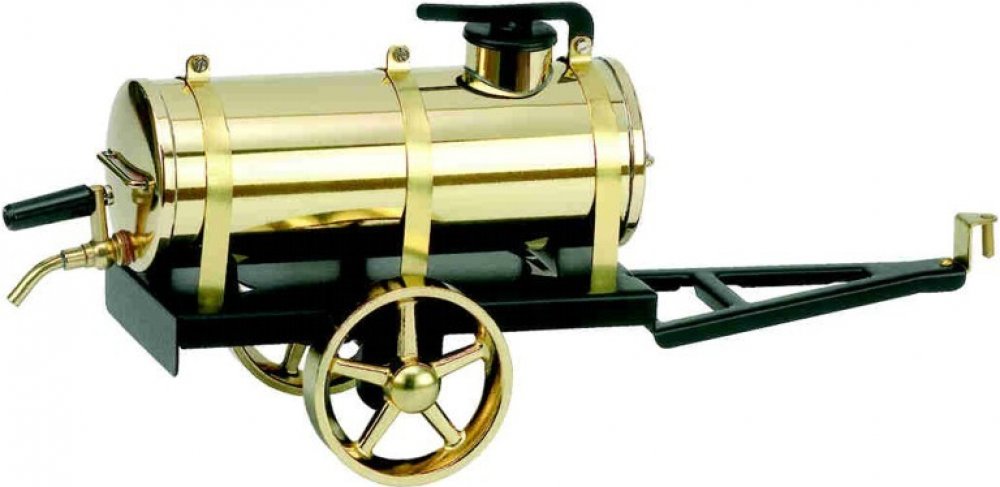 Model A386 je precizně zpracovaná cisterna v luxusním mosazném designu. Vhodná jako přívěs k parním vozidlům Wilesco – například k D406 nebo D366. Má realistické detaily včetně uzávěru, hadice a rámu.Rozměry: 25 × 9 × 11 cm. Výborný doplněk pro scénické modely, technické výstavy i jako stylová miniatura do vitríny. Mosazný povrch krásně ladí s černo-zlatými parními stroji Wilesco
