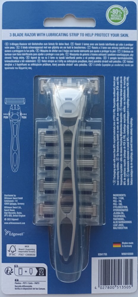 Pánský holicí strojek WILKINSON Essential 3 Hybrid vám se svou plovoucí hlavou a 3 břity zajistí hladké a precizní oholení. Dvojitý mazací proužek, zvlhčující před a po břitech pomáhá snížit podráždění při holení. Je vhodný k použití na tělo, vousy i obličej. Holicí strojek má systém otevřených čepelí pro rychlé oplachování. Je vhodný na mokré holení. Lehká, profilovaná a ergonomická rukojeť zajiš...