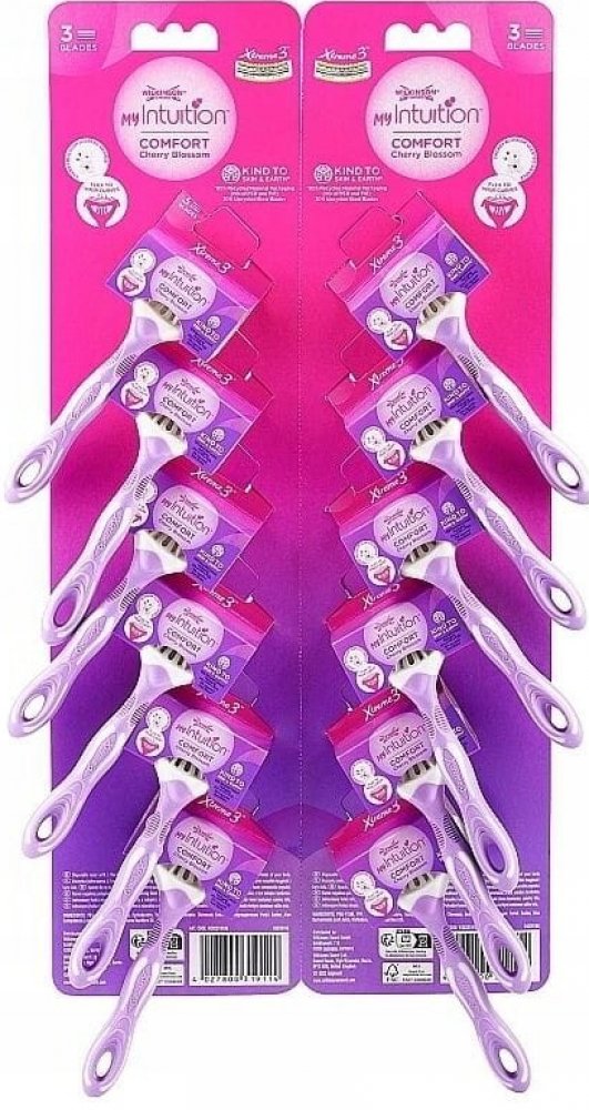 Na Jedno Použití holicí strojky Wilkinson Sword My Intuition Xtreme 3 Comfort Cherry Blossom s vůní třešňového květu. Tři flexibilní břity na pohyblivé hlavě se přizpůsobí všem ženským tvarům pro dokonale důkladné oholení ze všech úhlů. Zvlhčující pásek dodává pocit hydratace a pohodlí. Lehká, profilovaná, pogumovaná rukojeť zajišťuje stabilní a pevné oholení.