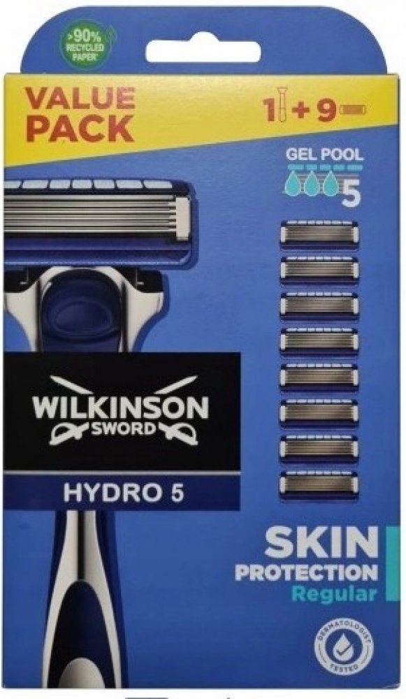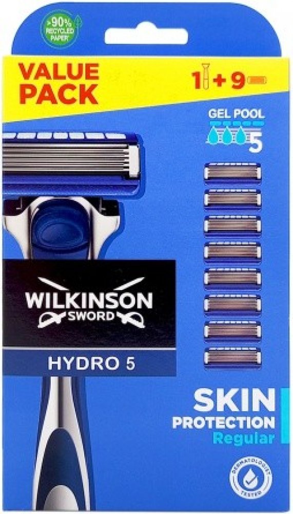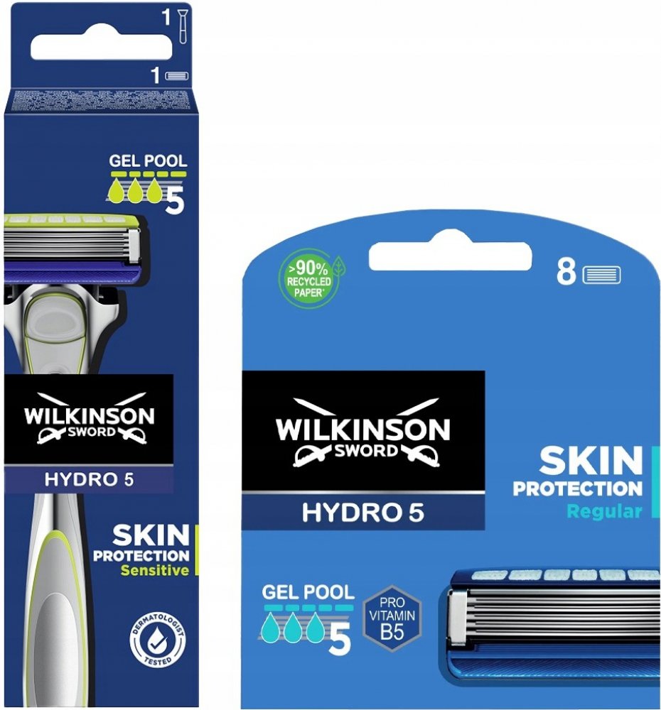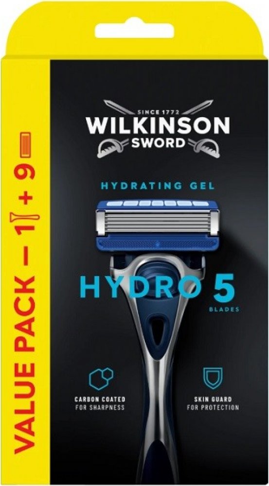 Sedm integrovaných gelových bazénků vhlavici holicího strojku HYDRO 5 Hydrating Gel chránípokožku během holení. Obsažený gel je obohacen o provitamin B5 a aktivuje se při kontaktu s vodou. Pokrývá pokožku jako ochranný film a umožňuje snadnější skluz břitů. Pět čepelí potažených karbonem v nejlepší kvalitě Wilkinson spolu s osvědčenými chrániči pokožkyzajišťují mimořádně důkladné oholení .Skin Gua...