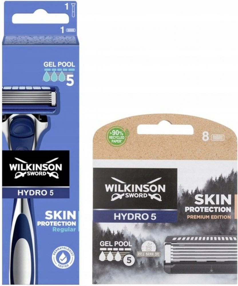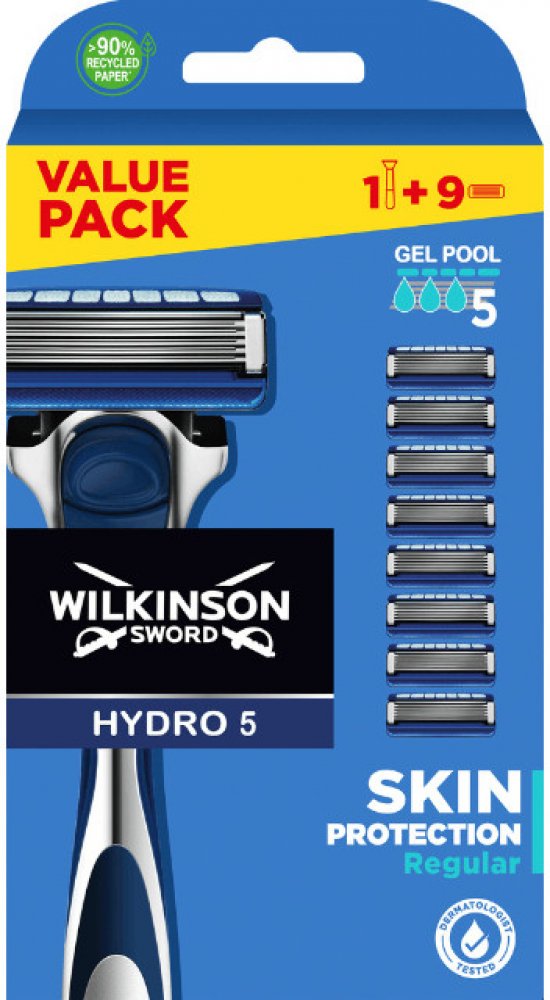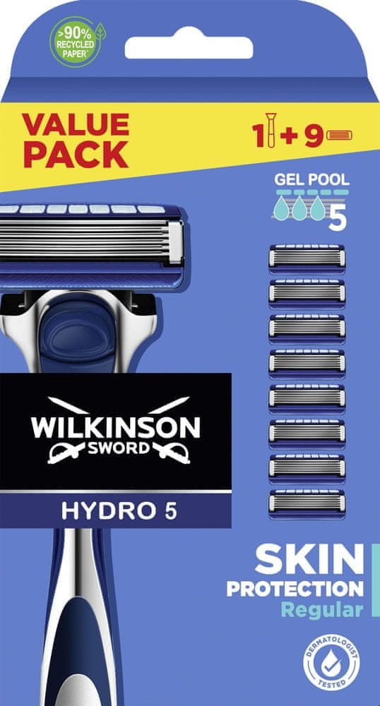 Sedm integrovaných gelových bazénků vhlavici holicího strojku HYDRO 5 Hydrating Gel chránípokožku během holení. Obsažený gel je obohacen o provitamin B5 a aktivuje se při kontaktu s vodou. Pokrývá pokožku jako ochranný film a umožňuje snadnější skluz břitů. Pět čepelí potažených karbonem v nejlepší kvalitě Wilkinson spolu s osvědčenými chrániči pokožkyzajišťují mimořádně důkladné oholení .Skin Guards zároveň snižují tření břitů o pokožku, což účinně zabraňuje podráždění. S výklopným zastřihovačemse strojek stává precizním nástrojem pro náročné oblasti kolem kotlet, kontur vousů apod. Obal se skládá z více než 90 % z recyklovaného papíru a je recyklovatelný. Všechny břity Hydro jsou kompatibilní se všemi holicími strojky Hydro. Holící strojek, který poskytuje jemné a dokonale hladké oholení díky 5 ultra glide břitům a technologií Skin Guard. Tato inovativní technologie vyhladí povrch pokožky a pomáhá eliminovat podráždění, čímž poskytuje pohodlný a šetrný zážitek. S unikátním hydratačním gelem obohaceným o vitamín B5, který pečuje o pleť během holení. Holící strojekWilkinson Hydro 5 Skin Protection zajistí jemné a dokonale hladké oholení díky 5 Ultra Glide břitům. Břity s technologií Skin Guard vyhladí povrch pokožky a pomáhají eliminovat její podráždění. Pánský holicí strojek Wilkinson Sword Hydro 5 ochrání pleť díky unikátní gelové hydrataci. Žiletky Wilkinson HYDRO 5 Skin Protection bylyvyvinuty pro optimální ochranu před podrážděním pokožky. Dermatologicky testovaný gel s provitamínem B5 mimo jiné pokrývá pokožku jako ochranný film. Gelová jezírka lze snadno odklopit a používat horní část hlavice břitů. Ta je vhodná pro stříhání a zastřihování těžko přístupných míst, například pod nosem. Obal je vyroben z více než 90 % z recyklovaného papíru a je recyklovatelný. Všechny břity Hydro jsou kompatibilní se všemi holicími strojky Hydro. [b]Wilkinson Hydro 5 Skin Protection Regular 1 holicí strojek + 9 břitů [/b][br][br][br]- Gelový bazén 5[br][br]-Břity Ultra Glide s ochranou pokožky snižují tření o pokožku pro větší pohodlí a bezpečnost při holení[br][br]- Zásobník na gel s Pro Vitaminem B5 zajišťuje snadný skluz, udržuje vlhkost pokožky během holení a chrání ji před podrážděním[br][br]- Komůrky na gel mají mikrootvory které gel rovnoměrně rozvádějí po pokožce[br][br]- Výklopný zastřihovač umožňuje snadné a přesné oholení těžko přístupných míst i přesné zastřižení kontur[br][br]- Ochranná lišta zajišťuje důkladné oholení, protože kombinace podélných a příčných drážek napíná pokožku před každým oholením[br][br][br][br][b]Obsah:[/b][br][br]- 1 holicí strojek[br][br]- 9 břitů Náhradní břity[br][br][br][b]Informace[/b][br][br]- Může dojít ke změně designu