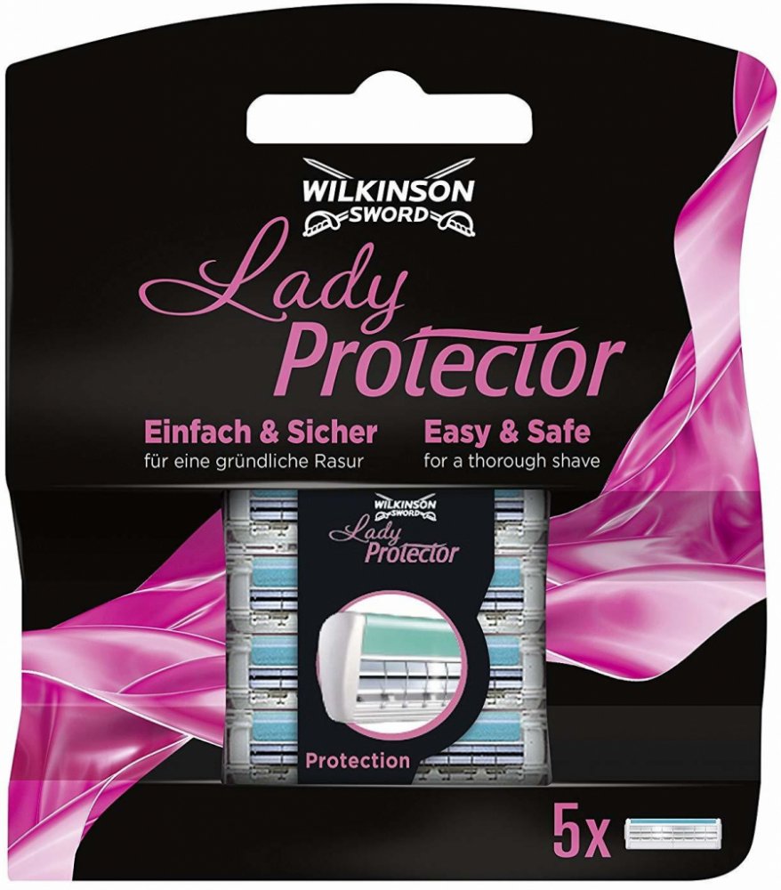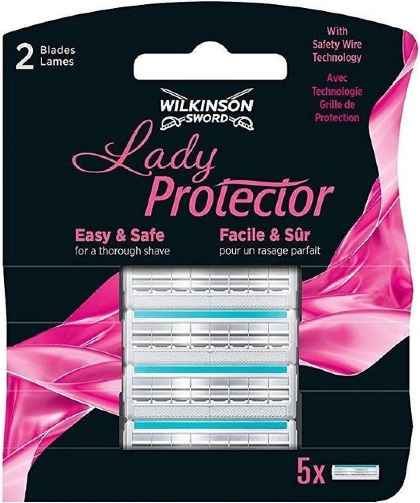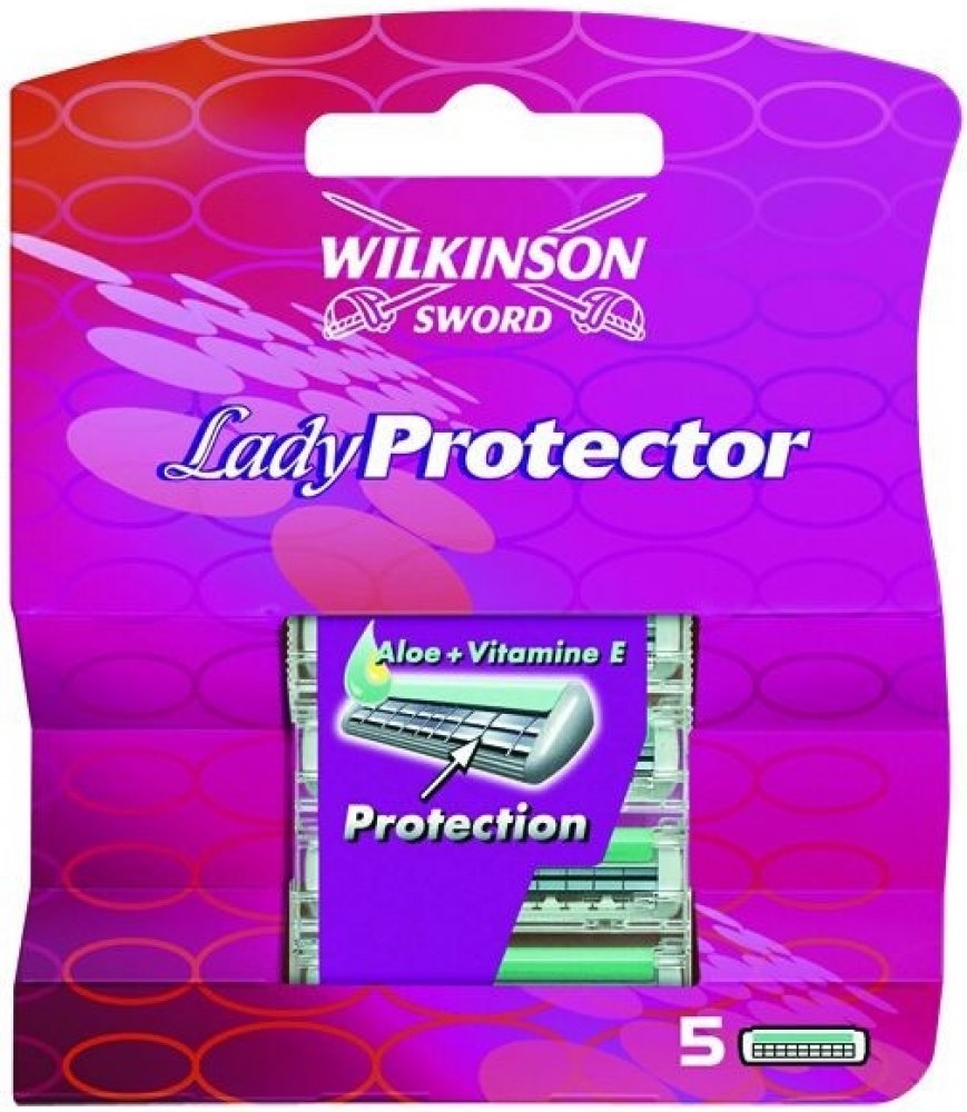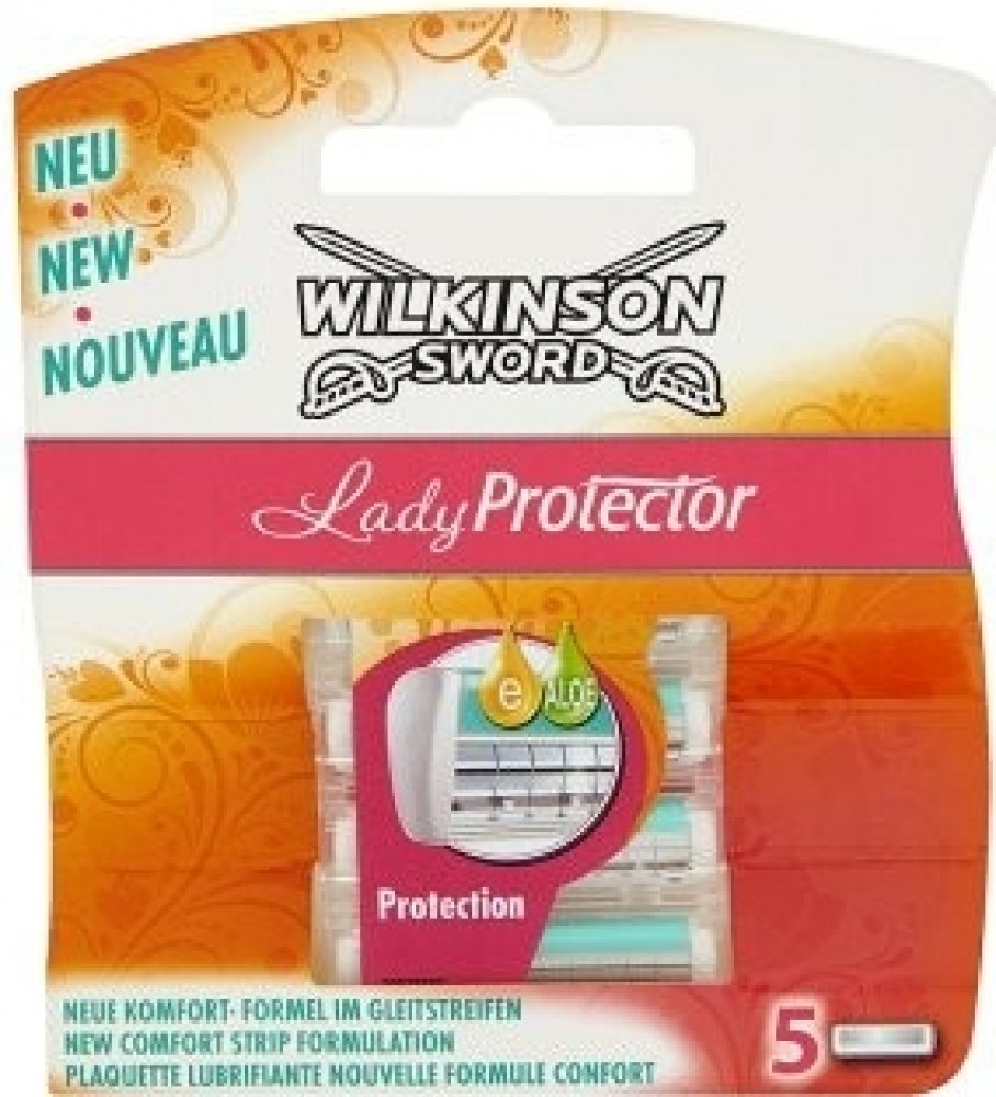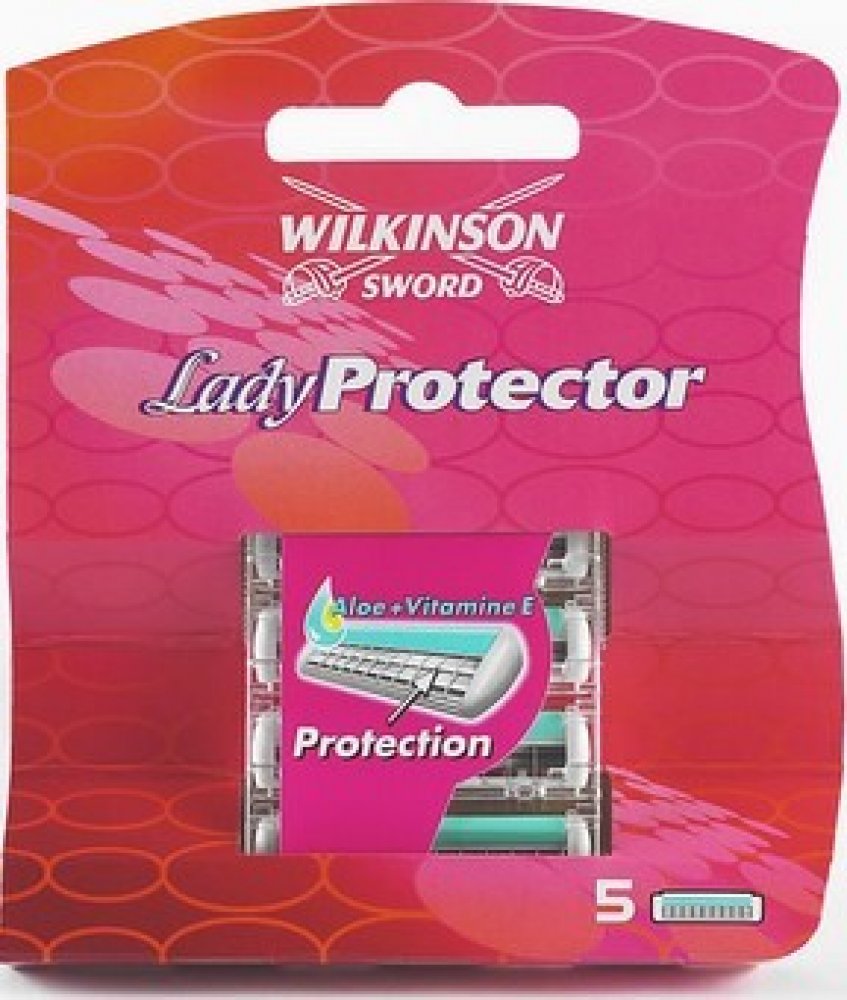 Wilkinson Lady protector jsou náhradní hlavice, které mají dva břity s ochranou mřížkou, čímž se zabraňuje tomu, aby došlo k poranění pokožky při holení.Náhradní hlavice mají zvlčující proužek s Aloe Vera a vitamínem E, který výrazně přispívá ke zklidnění pokožky.