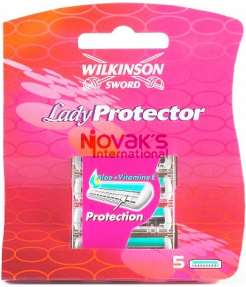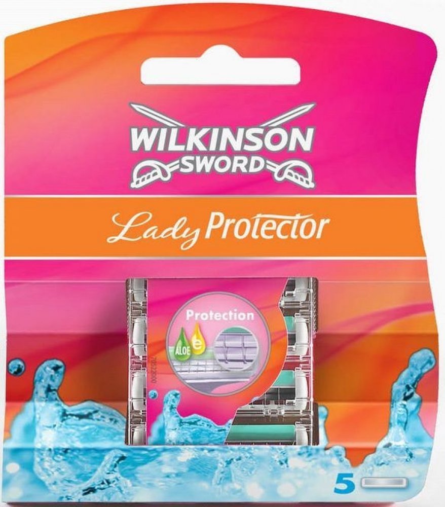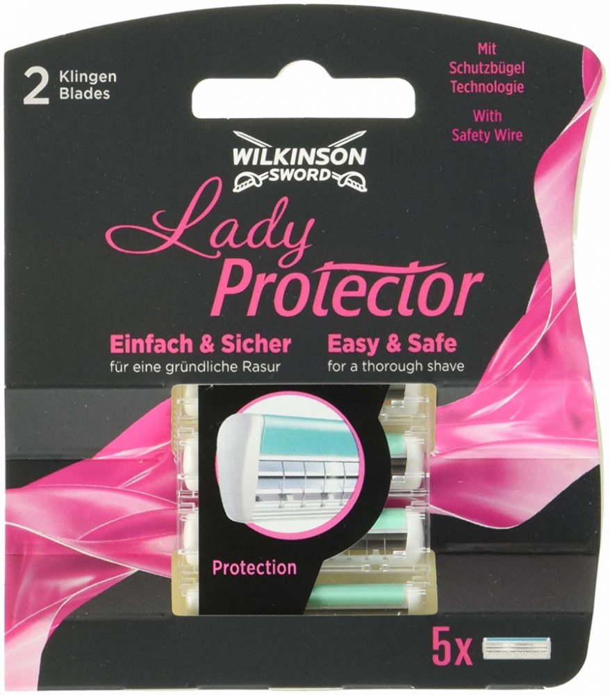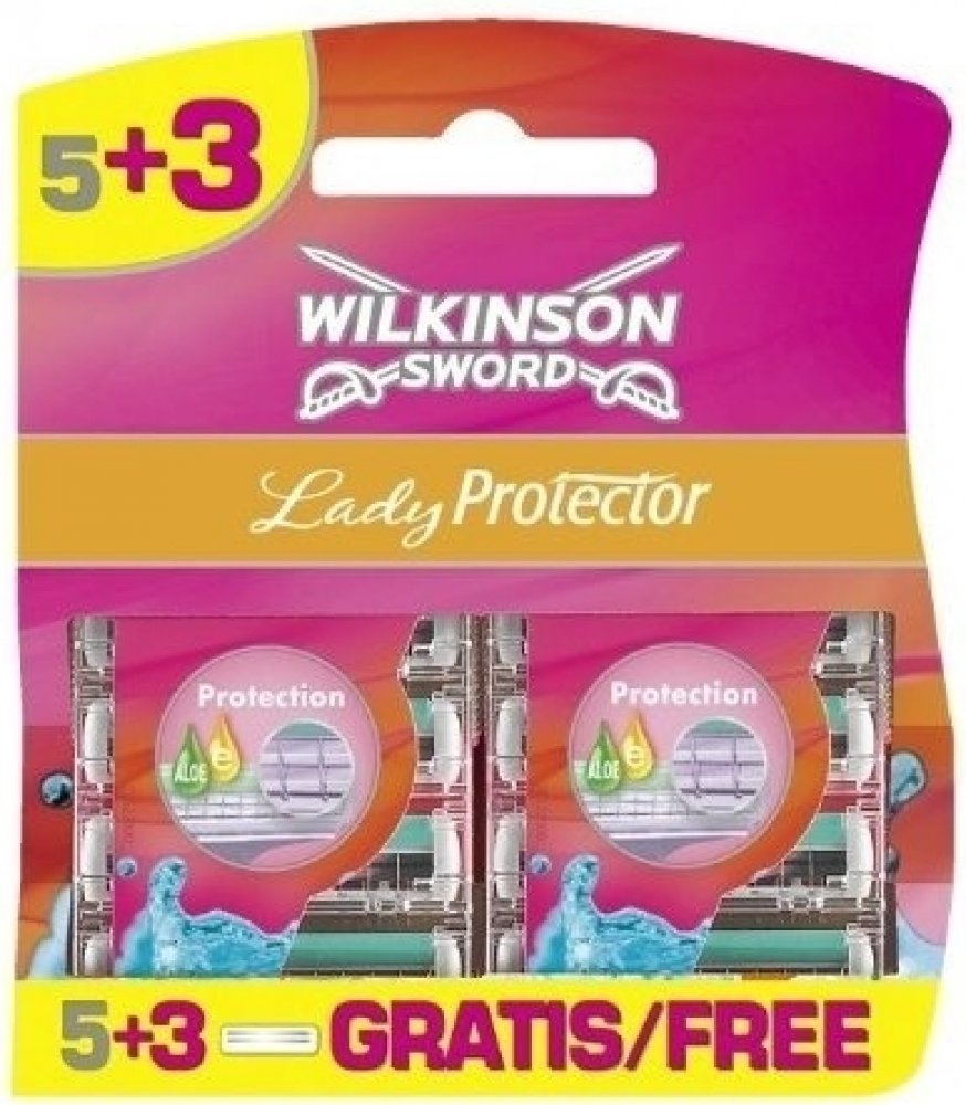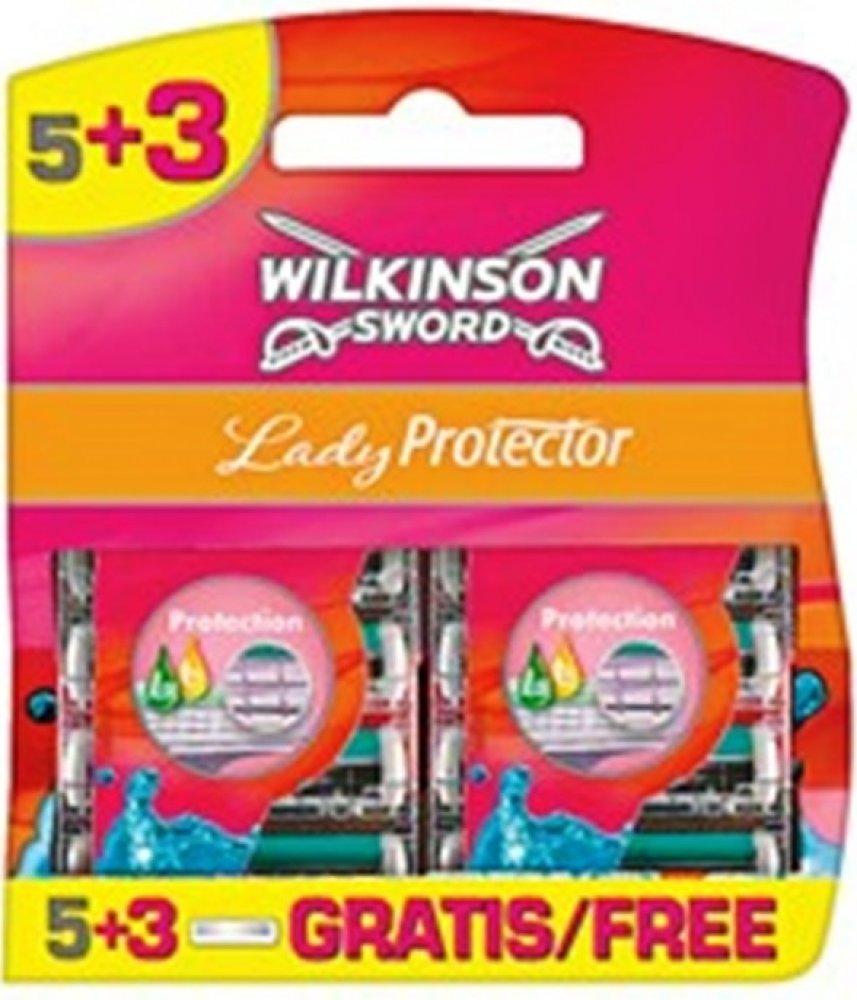 Wilkinson Lady protector jsou náhradní hlavice, které mají dva břity s ochranou mřížkou, čímž se zabraňuje tomu, aby došlo k poranění pokožky při holení.Náhradní hlavice mají zvlčující proužek s Aloe Vera a vitamínem E, který výrazně přispívá ke zklidnění pokožky.