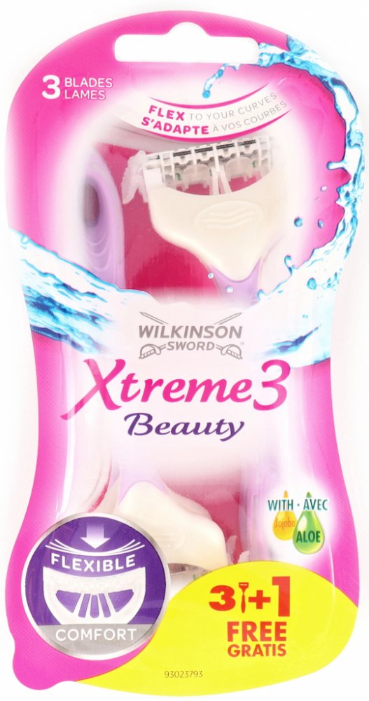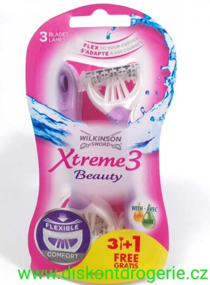 Dámský jednorázový holicí strojek Wilkinson Xtreme3 Beauty kombinuje výkon prémiového strojku s vyměnitelnými břity s pohodlím, cenou a hygienou jednorázového strojku. Tři ostré břity a dva zvlhčující pásky s aloe vera a jojobou se postarají o dokonale hladkou pokožku. 4 ks jednorázového holícího strojku 3 flexibilní břity a hlavice výkyvná 30° Dva zvlhčující pásky Jojoba + Aloe Lehká rukojeť s pogumovanou úpravou Účinky Jojobového oleje:Pomáhá předcházet tvorbě vrásek. Napomáhá regulaci tvorby mazu. Působí desinfekčně a protizánětlivě. Zjemňuje pokožku a napomáhá její hydrataci. Ošetřuje popraskanou, zdrsnělou nebo jinak poškozenou pokožku. Účinky Aloe Vera:Má harmonizující účinek. Má protialergické a protizánětlivé účinky. Ničí bakterie, viry a plísně. Tlumí a odstraňuje bolest. Snižuje krvácení a urychluje hojení. Účinky Bambuckého másla:Pečuje o podrážděnou, narušenou či poškozenou pleť. Skvěle hydratuje pleť a zlepšuje stav popraskaných rukou či pat. Zklidňuje pokožku po holení a epilaci. Urychluje hojení drobných ranek a odřenin. Stimuluje mikrocirkulaci kožních buněk a neucpává póry.