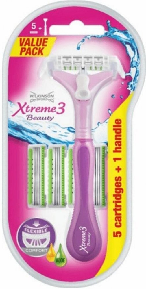 (BAL:1/5ks)Dámský holicí strojek WILKINSON Xtreme3 Beauty Hybrid je skvělým pomocníkem pro rychlé a snadné oholení podpaží, nohou i intimních partií. Precizní oholení a hedvábně hladkou pokožku zaručují tři flexibilní břity na otočné hlavici, která se dokonale přizpůsobí tvaru těla. Pro hydrataci pokožky a holení bez podráždění je strojek vybaven ochranným zvlhčujícím proužkem s Jojobou a Aloe.Vlastnosti:5 ks náhradních hlavic. 3 flexibilní břity a výkyvná hlavice.Zvlhčující pásek. Proužek pro napínání pokožky usnadňuje holení. Těžší rukojeť pro přesnějsí pohyby. Balení obsahuje holící strojek a 5 ks náhraních hlavic.Balení: sáček se závěsem.