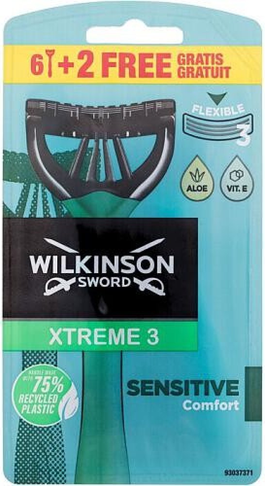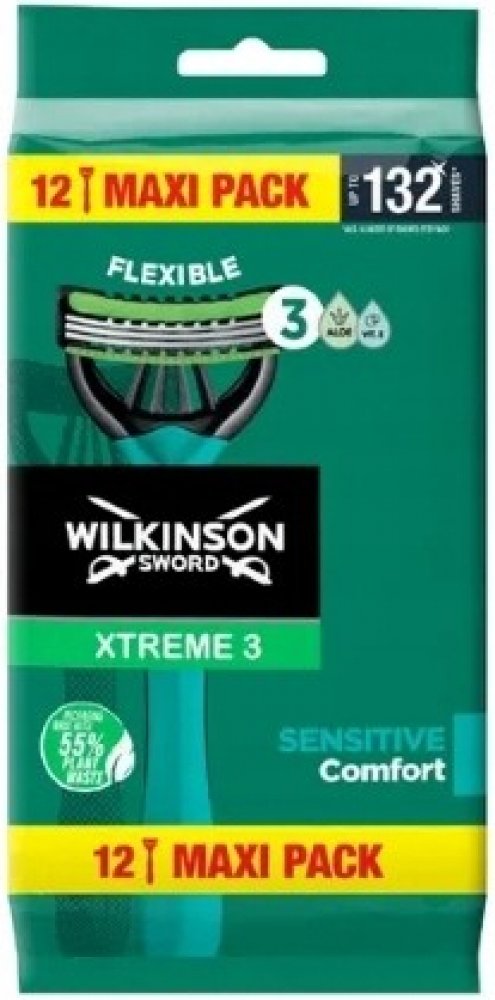 Wilkinson Extra3 se 3 břity na výkyvné hlavici zaručují důkladné holení. Zvlhčující proužek udržuje pokožku v dobré kondici. Proužek pro napínání pokožky usnadňuje důkladné oholení. Lehká, profilovaná, plastová rukojeť byla navržena tak, aby byl zaručen pohodlný úchop.