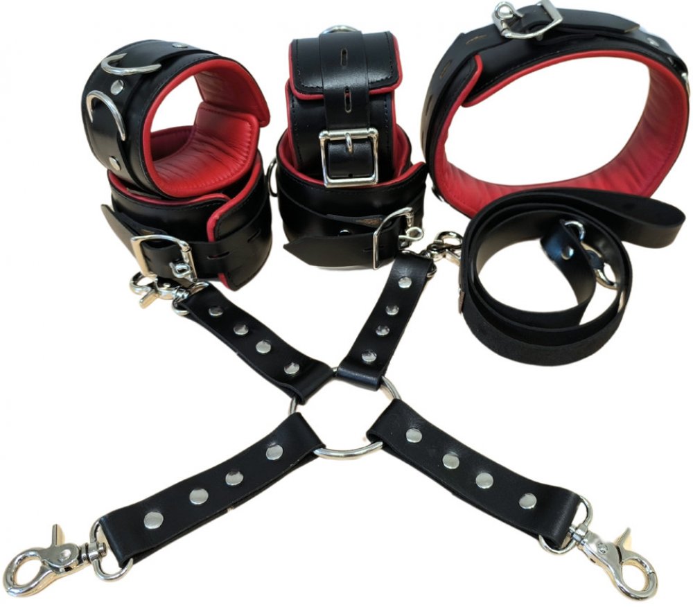 Obsah baleníPouta na ruce 2xPouta na nohy 2xObojek s vodítkemKříž s vypouštěcími karabinami