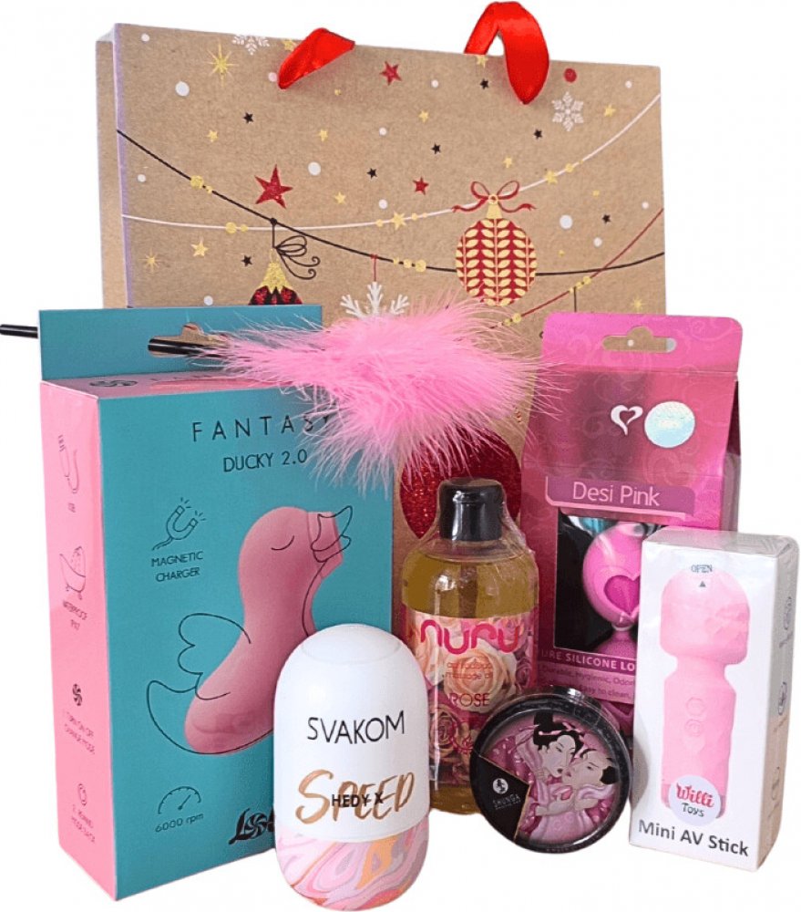 Sada se skládáWilli - mini vibrační hlavice - díky své velikosti projede každou skulinkou tvého těla a její síla je obrovská.Lola Games - stimulátor klitorisu ve tvaru kachničky - uchvatné tepaní, se kterým docílíš rychlého orgasmu.Nuru - Přírodní masážní olej - tak tohle je naprosto přírodní pecka se kterou se lehce sklouzneš v každé situaci.Šimrátko Sexy Feather Tick - nejjemnější pohlazení je peřímShunga - masážní svíčka - teplý vosk tě roztajeFeelztoys - venušiny kuličky - vytrénuj své svaly, které ti časem poděkujíSvakom - masturbační vajíčko pro muže Hedy X s texturou speed.