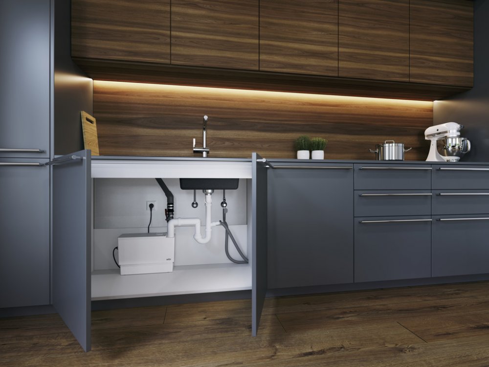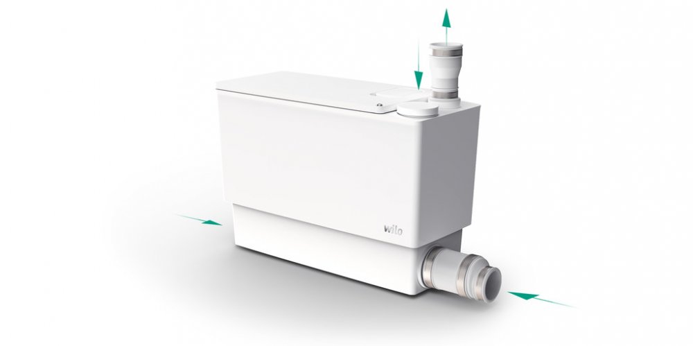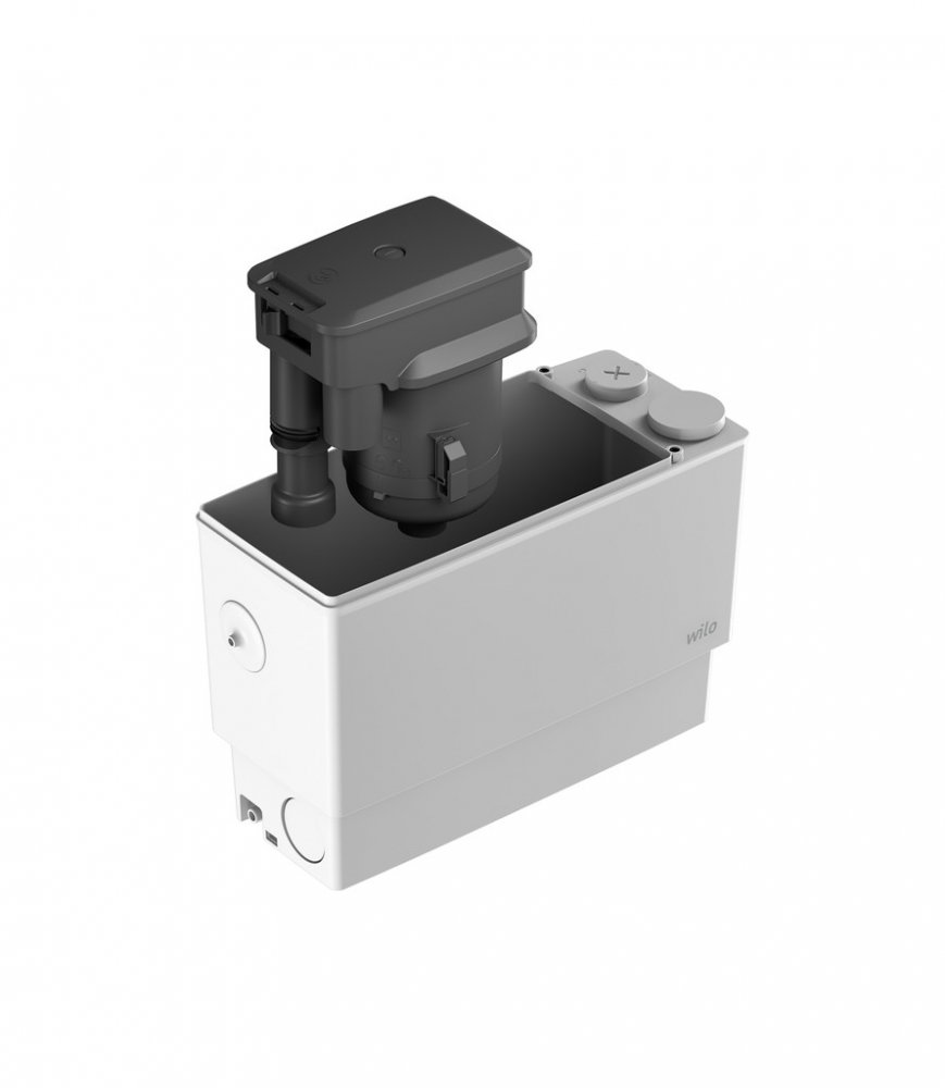 Kompaktní přečerpávací stanice připravená k zapojení pro odvodnění umyvadel, sprch a van.