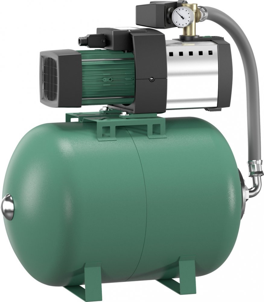 Kompletně smontovaná a zapojená jednotka, sestávající z vícestupňového, horizontálního odstředivého čerpadla v suchoběžné konstrukci, samonasávací, s přímo přírubou připojeným motorem, (utěsnění na průchodu hřídele bezúdržbovou mechanickou ucpávkou) a s membránovou tlakovou nádobou.