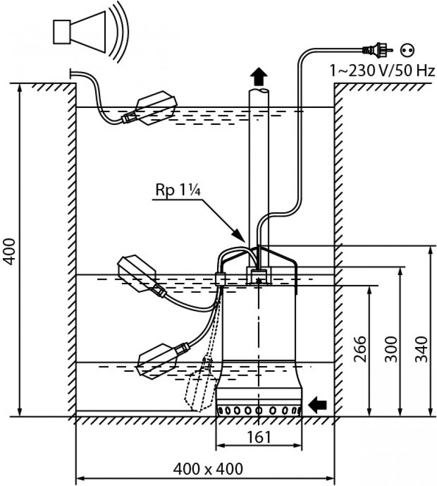 Ponorné čerpadlo pro stacionární a přenosnou instalaci v mokré jímce. Čerpadlo s vestavěným plovákovým spínačem pro plně automatický provoz.