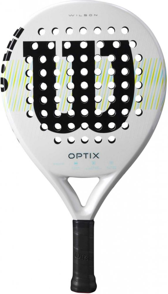Padelová raketa Wilson OPTIX V1 je vynikající startovací raketa za příznivou cenu, která zaujme velkou skupinu nových padelových hráčů. Začátečníci se budou cítit úspěšní hned od začátku díky velké velikosti hlavy, která poskytuje větší úderovou plochu, jež pomáhá dostat do kurtu více míčků. Kulatý tvar a rám ze skelných vláken poskytují snadnou ovladatelnost a pohodlí. Pěnové jádro s nízkou hustotou tlumí vibrace a dokáže generovat silný úder při zachování měkkého a pohodlného pocitu. Pokročilá technologie vrtání otvorů Sharp Hole poskytuje raketě větší spin při každém úderu.