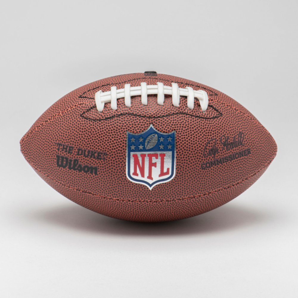 Syntetický míč s efektem hnědé kůže Wilson The Duke vzdává hold Wellingtonu Maraovi, průkopníkovi amerického fotbalu.