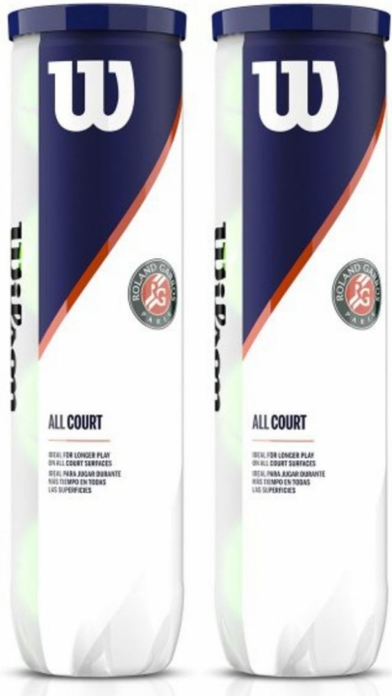 Tenisové míčky WILSON Roland Garros All CT 4 Ball 2pack Míčky WILSON Roland Garros All CT 4 Ball jsou ideální pro hru na všech površích. Jsou vyrobeny z odolné, trvanlivé plsti, která zaručuje dlouhou životnost. Speciální materiál zabraňuje proniknutí vlhkosti a nabalování antuky.