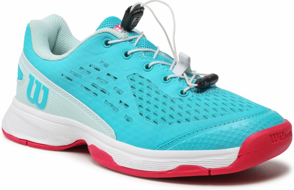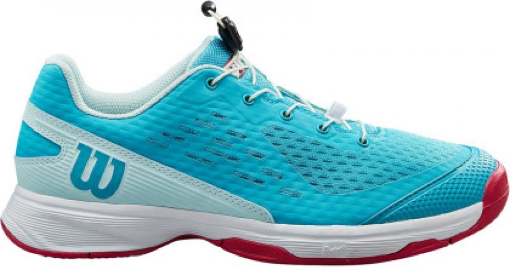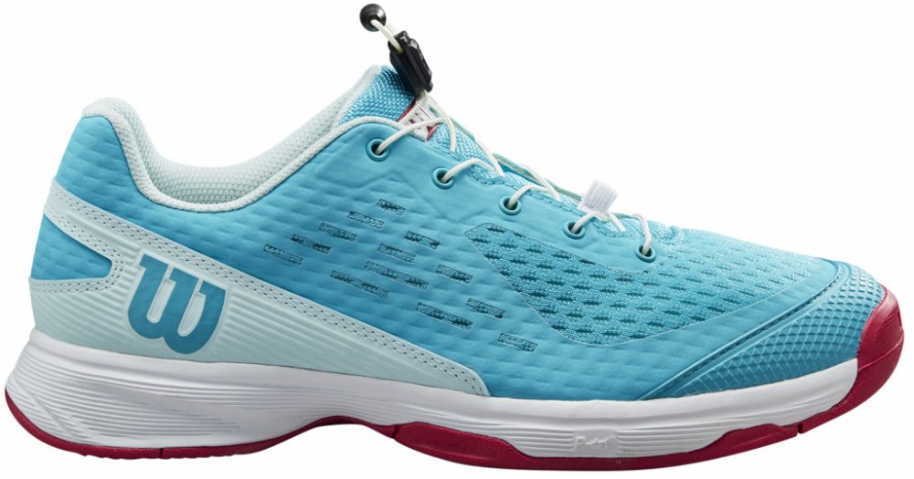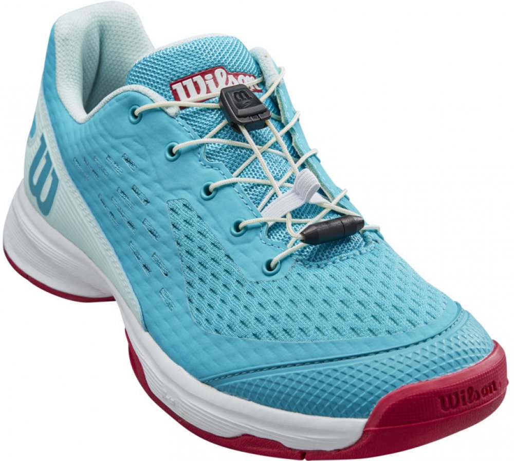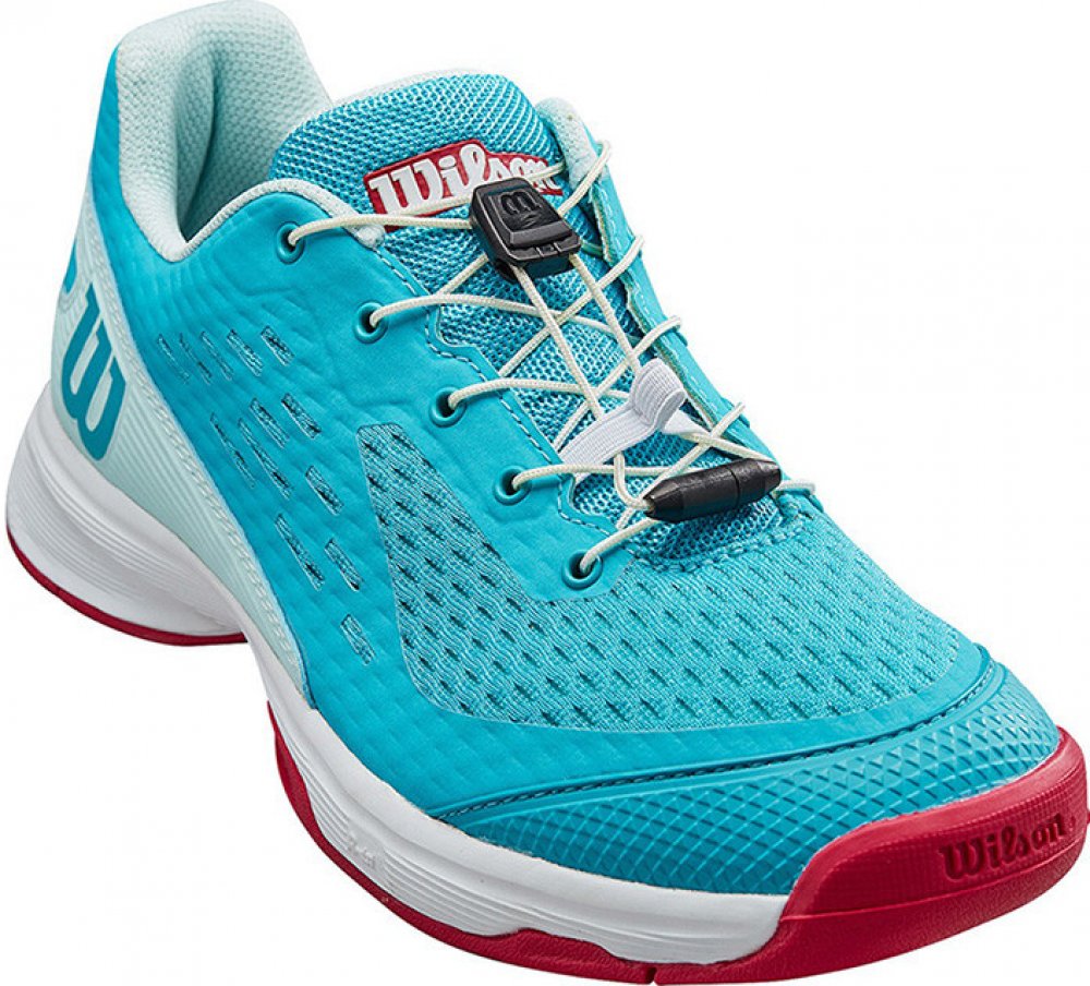 Juniorské tenisové boty Wilson Rush Pro Jr 4.0 Ql jsou především určené pro výkonnostní tenis. Materiál a vlastnosti: svršek - syntetika, textilie mezipodešev - R-DST+ EVA podešev - guma, DURALAST® vhodné na všechny povrchy R-DST - zvyšuje tlumení boty pro lepší komfort a zároveň zlepšuje dynamiku odrazu díky stlačené EVA hmotě DURALAST®- exkluzivní pryžová směs zajišťuje maximální přilnavost, chrání před opotřebením a zaručuje dlouhou životnost Quicklace™ - pevné, snadné a rychlé zavazování a rozvazování bot boční gumové výztuže chránící horní část při těžkých smycích