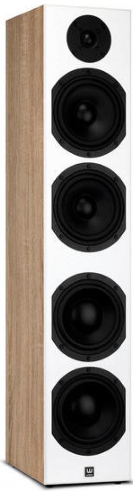 Reproduktory Wilson Six jsou k dispozici ve dvou barevných provedeních: černá skříň se saténově černým nebo světlým dubovým čelem; obě s charakteristickou jemnou strukturou dřeva.