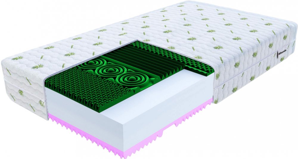 Profilovaná 7-zónová vysoce kvalitní pěna zajišťuje zlepšení prokrvení pokožky a uvolnění svalstva během spánku. Vlivem teploty těla se přizpůsobuje jeho tvaru, čímž zvyšuje pocit dobrého spánku. Díky systému 7 zón tvrdosti nabízí páteři i celému tělu přirozenou polohu a podporu. Tato pěna je vhodná i pro alergiky.