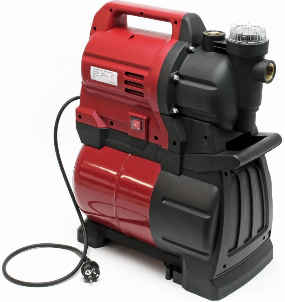 Chraňte životní prostředí a svoji kabelku! S tímto kompletním systémem domácí vodárny, který se skládá z membránové nádrže a proudového čerpadla s tlakovým spínačem, máte všechny komponenty, které potřebujete pro čerpání čisté vody ve vašem domě a zahradě. Hlavním aspektem je zásobování vodou v rámci domácnosti; sprchy, pračky a splachovací systémy toalet již nemusí být zásobovány hodnotnou pitnou vodou z vodovodu, ale lze je jednoduše provozovat s dešťovou vodou, technologickou vodou a podzemní vodou. Voda se čerpá ze studní nebo cisteren pomocí elektrárny a předává se dál. Zařízení je působivé i při použití jako systém pro zvyšování tlaku. Pomocí zapínacího a vypínacího tlaku lze přesně zvýšit tlak vody ve stávající vodovodní síti, například k zajištění tlaku vody ve vyšších podlažích. Domácí vodárnu lze plnohodnotně využívat i na zahradě, například při použití automatických závlahových systémů. Domácí vodárna má výkon 1 300 wattů a maximální dopravní výšku 48 metrů (max. 4,8 baru). Tlaková nádoba má objem 19 litrů a je vyrobena z nárazuvzdorného plastu, díky čemuž je obzvláště stabilní a odolná. Praktické držadlo na horní straně zařízení také usnadňuje přenášení. Technické parametry: Spotřeba energie: 1 300 W Vstupní napětí: 230 V ~ 50 Hz Max. průtok: 4 500 l/h Max. dopravní výška: 48 m Max. sací hloubka: 8 m Objem: 19 l Materiál: plast Stupeň ochrany: IPX4 Délka kabelu: 1,1 m Hladina hluku: 85 db(A) Spojení: 32,89 mm (G1") Rozsah teploty: 35 °C Rozměry: 470 x 250 x 575 mm Hmotnost: 18,3 kg