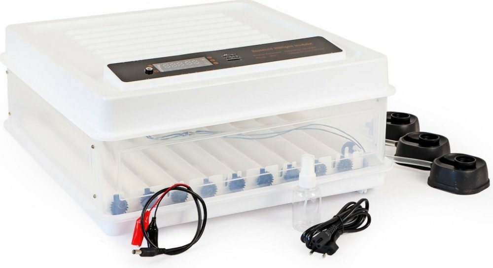 Plně automatický plochý inkubátor Fudajo pro 64 vajecPlně automatický plochý inkubátor Fudajo nabízí optimální podmínky pro líhnutí vajec široké škály druhů drůbeže. S kapacitou až 64 vajec je tento inkubátor ideální pro kuřata, kachny, husy, holuby nebo křepelky. Díky nejmodernější technologii je teplota přesně řízena a vlhkost efektivně regulována. Tento motorizovaný inkubátor vytváří perfektní podmínky pro úspěšné líhnutí.Přesná regulace teploty a vlhkostiStabilní inkubační klima je klíčové pro úspěšné líhnutí. Inkubátor je vybaven inteligentním systémem regulace teploty, který umožňuje přesnou regulaci. Teplotu lze snadno nastavit a sledovat pomocí displeje. Mezi další součásti inkubátoru patří ventilátor pro dobrou cirkulaci vzduchu a chytrý systém regulace vlhkosti. Za tímto účelem se na dodané malé nádoby na vodu našroubuje standardní plastová láhev naplněná vodou (není součástí balení). Voda pomalu a rovnoměrně proudí do inkubátoru tenkou hadicí.