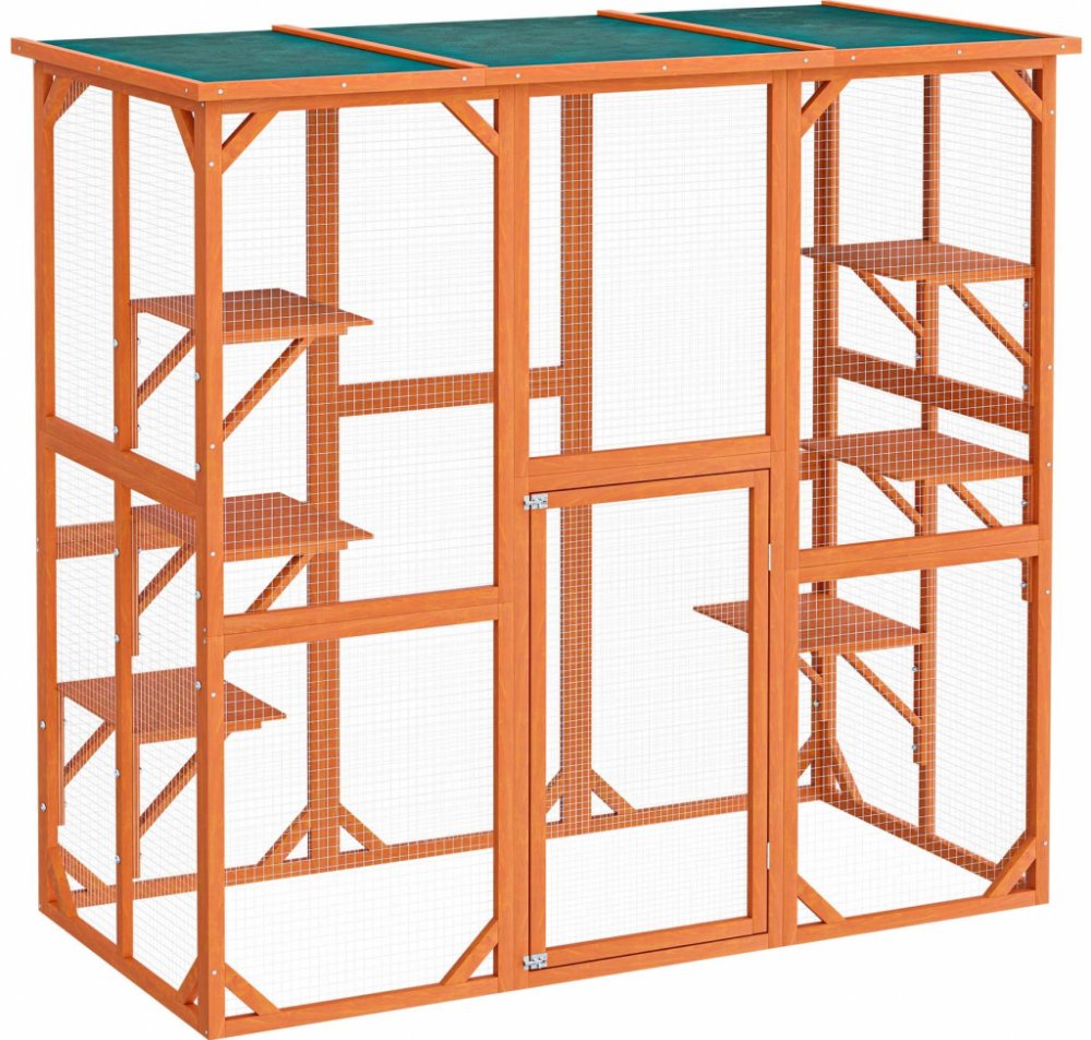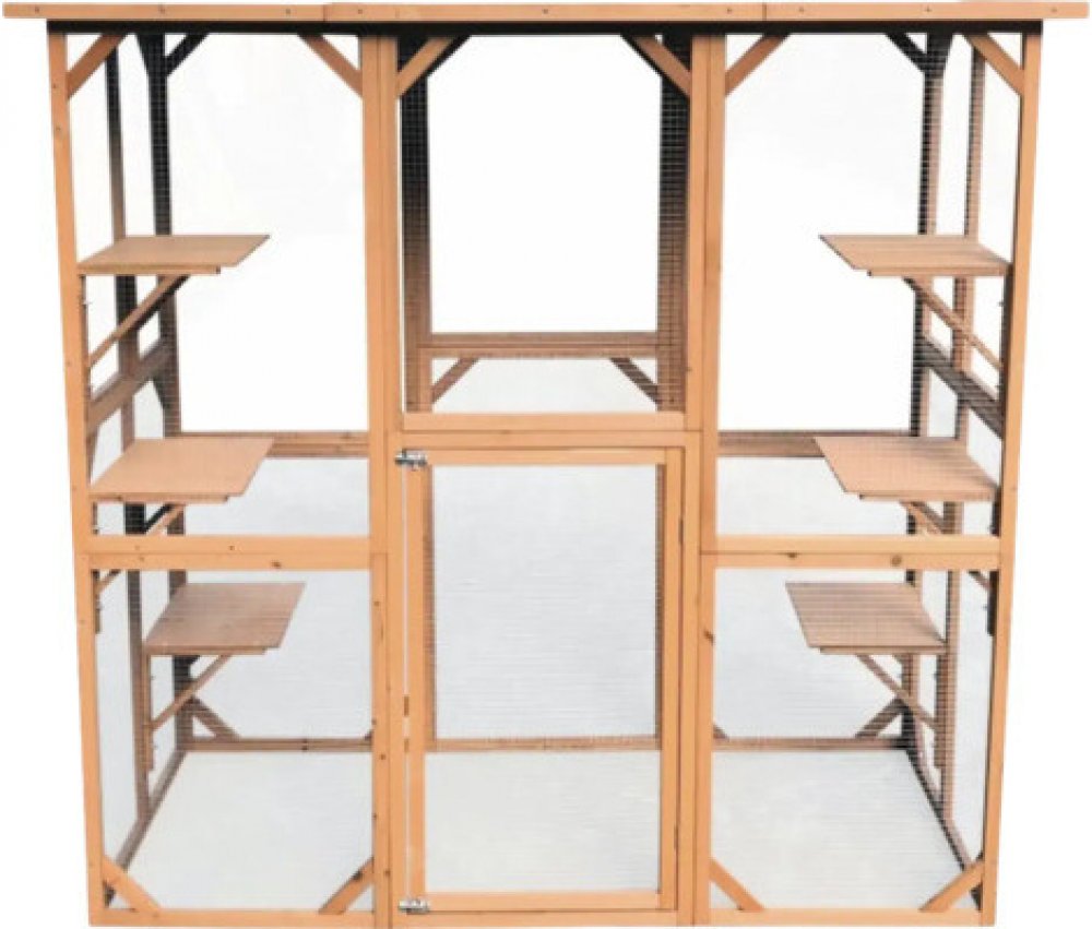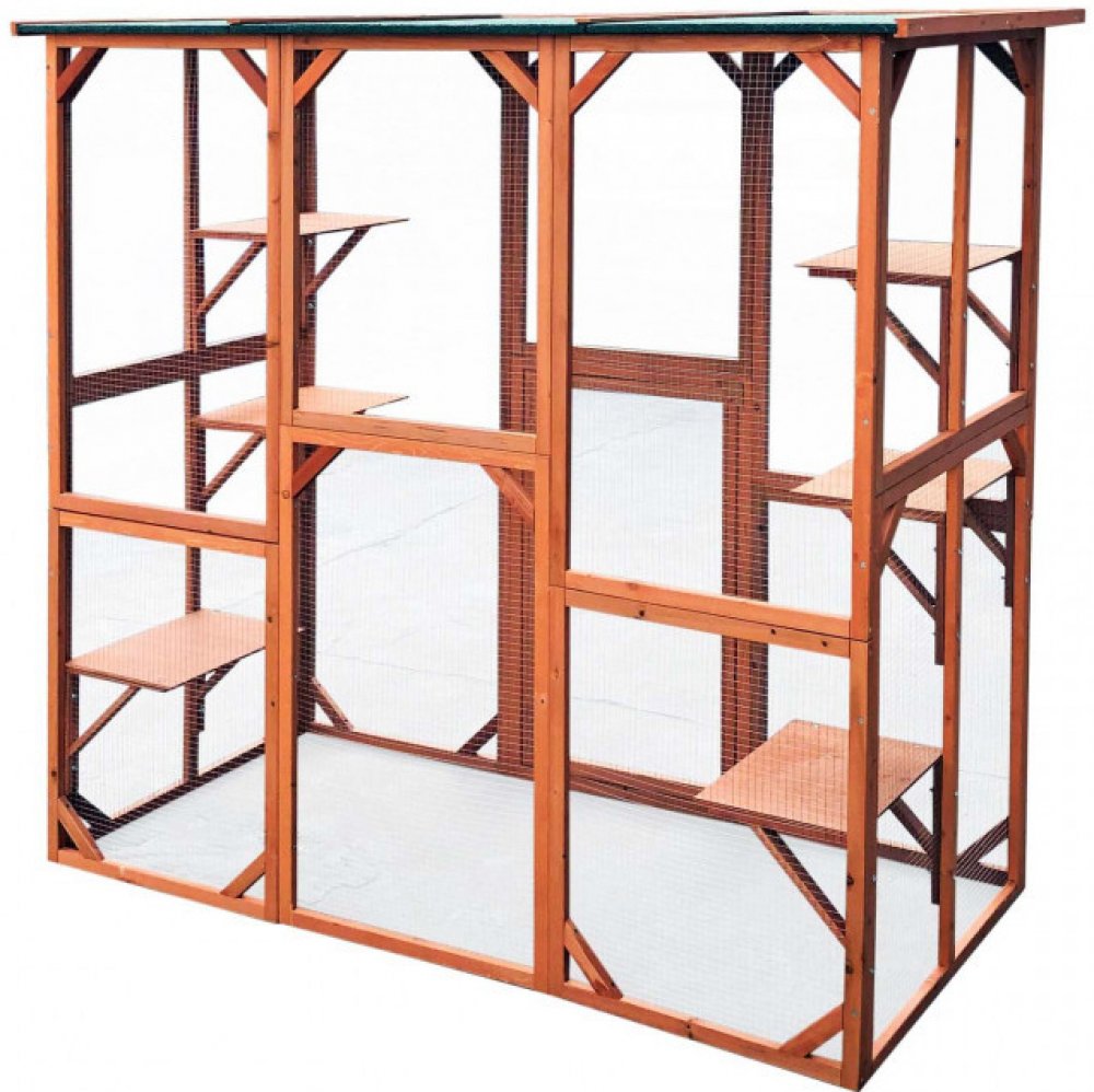 Vhodné pro instalaci na zahradě, dvoře a teraseDomeček je odolný proti povětrnostním vlivům, a je tak vhodný do všech povětrnostních podmínekSe 6 lehátky pro prvotřídní pohodlíS celkovými rozměry 180 x 88 x 169 cmSnadná montáž díky předvrtaným otvorům a návodu k montáži Tento praktický venkovní výběh umožní vašim domácím mazlíčkům proběhnout se na čerstvém vzduchu bez rizika útěku. Díky svým velkým rozměrům 180 x 88 x 169 cm je výběh vhodný zejména pro instalaci na zahradě, dvoře a terase. Výběh je vyroben z ušlechtilého jedlového dřeva s vodoodpudivým lakem, stabilní drátěnou mříží z pozinkované oceli a střechou odolnou proti povětrnostním vlivům s bitumenovou vrstvou, takže ani déšť, sníh a silné sluneční záření nejsou žádný problém. Kromě toho má výběh šest lehátek, ze kterých mohou vaše sametové tlapky pozorovat okolí a odpočívat. Díky předvrtaným otvorům a přesnému návodu k montáži je montáž výběhu rychlá a snadná. Kromě toho má výběh dvířka, která lze zvenku uzamknout, což vám umožní snadný přístup do výběhu a poskytne dodatečnou bezpečnost. Podrobnosti: Odolnost proti povětrnostním vlivům Se 6 odpočívadly Pro zahradu, dvorek a terasu Rozměry 180 x 88 x 169 cm Velikost oka : 12 mm Tloušťka drátu: 0,75 mm Materiál Jedlové dřevo