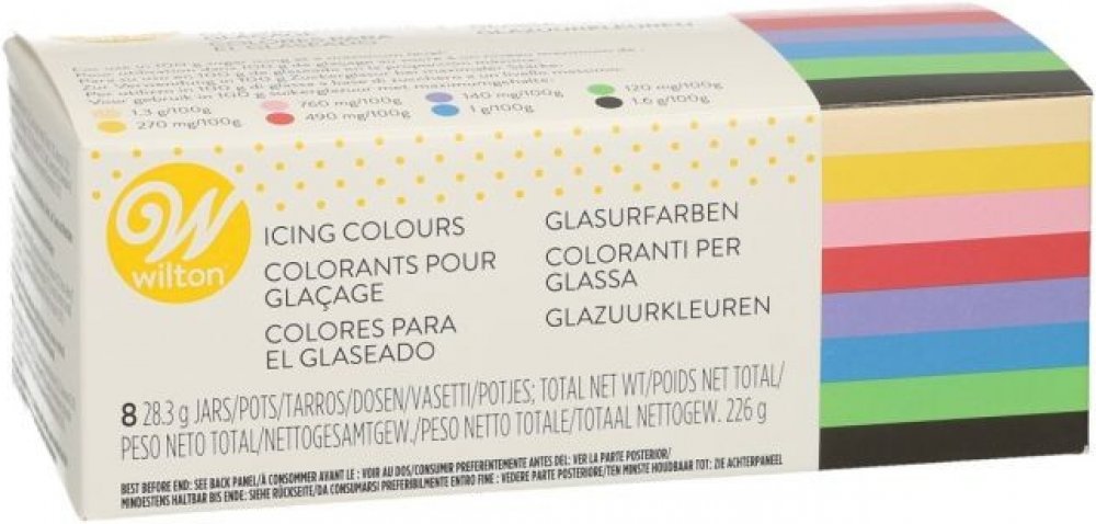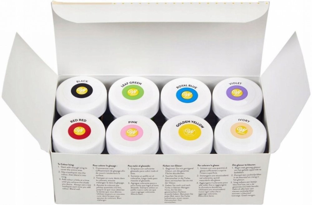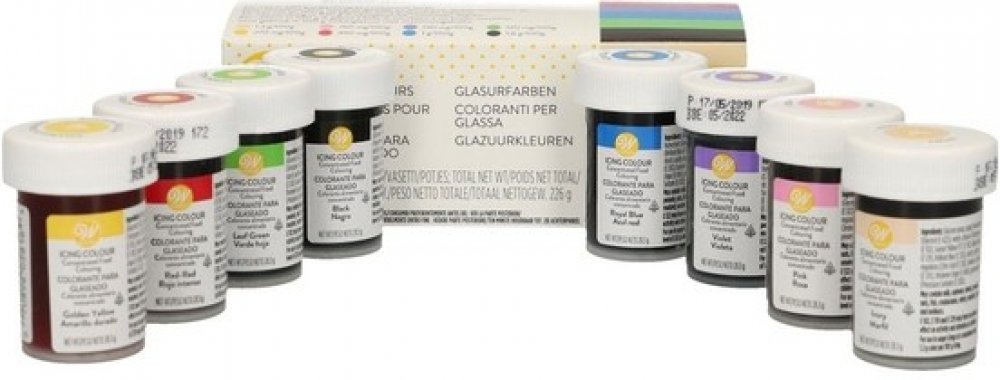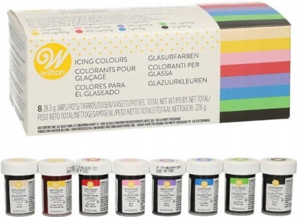 Sada gelových barev Wilton je ideálním řešením pro všechny, kteří chtějí dosáhnout intenzivních, živých barev při dekorování svých cukrářských výtvorů. Tato sada obsahuje několik gelových barev na vodní bázi, které jsou speciálně navrženy pro použití na dorty, sušenky, fondán a další cukrářské výrobky.
