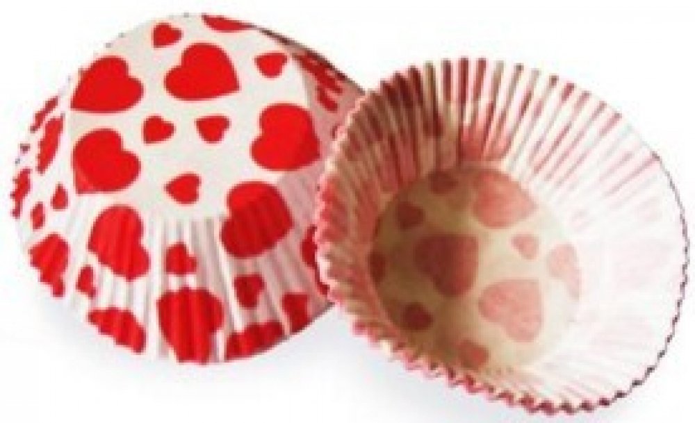 Cukrářské košíčky červená srdíčka 50 x 30 mm [1 ks] Dodací balení: 40 ks Kartón: 50 balení Paleta: 3600 balení
