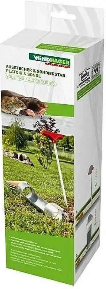 Past na hraboše od značky Windhager se skládá ze sondy a půdního vrtáku. Sondovací tyč sloučí pro identifikaci podzemních chodbiček hrabošů. Pomocí půdního vrtáku s ostrými zuby pak snadno proniknete do země a zanecháte díru o průměru 5 cm, která je ideální pro vertikální umístění pasti na hraboše.