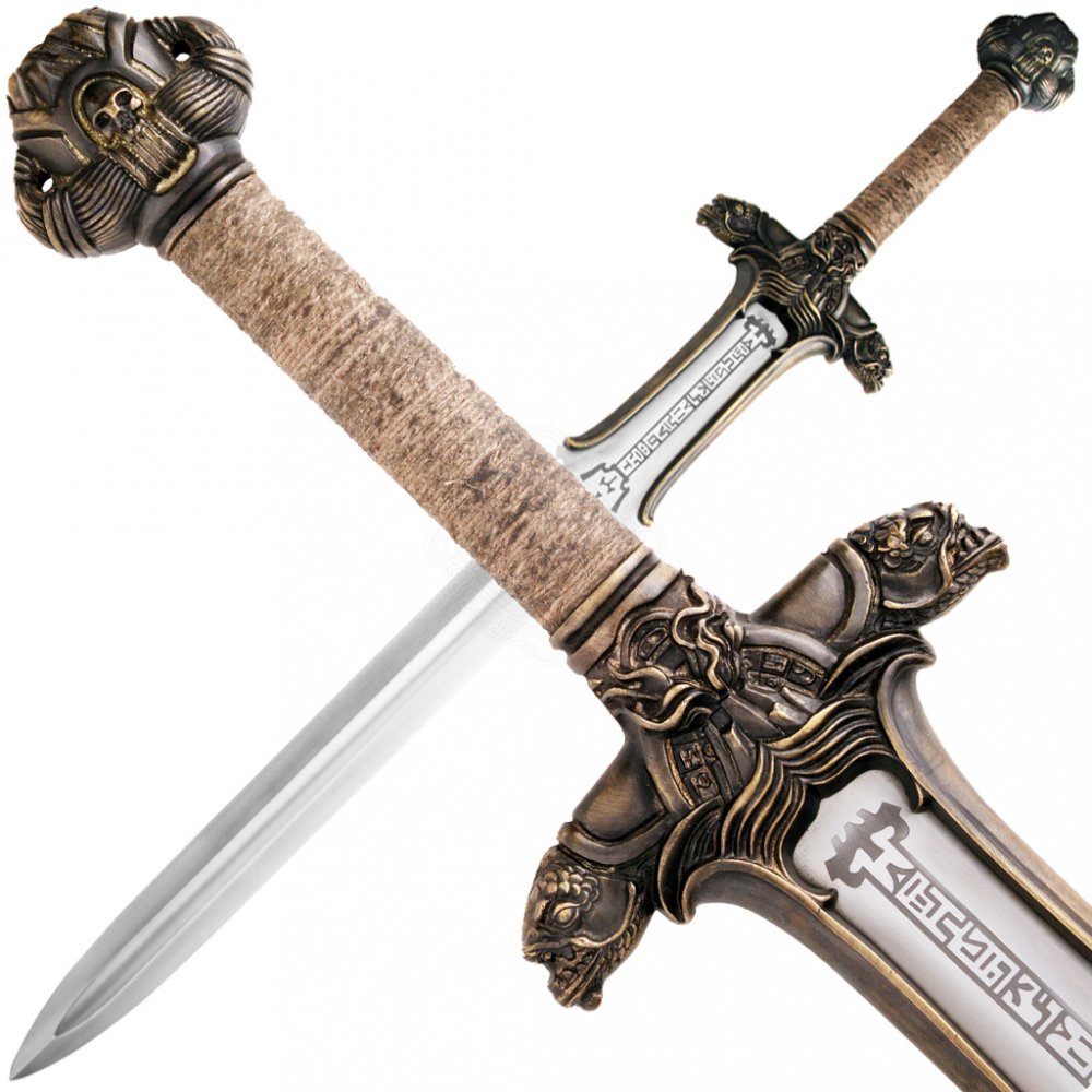 Runy na čepeli meče otce Conana praví „Suffer no guilt, yee who wield this in the name of Crom“. Jsou do čepele do hloubky vyleptané.