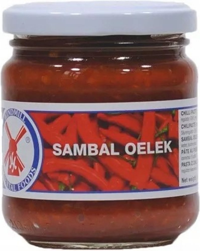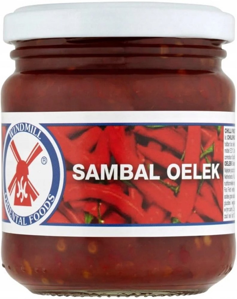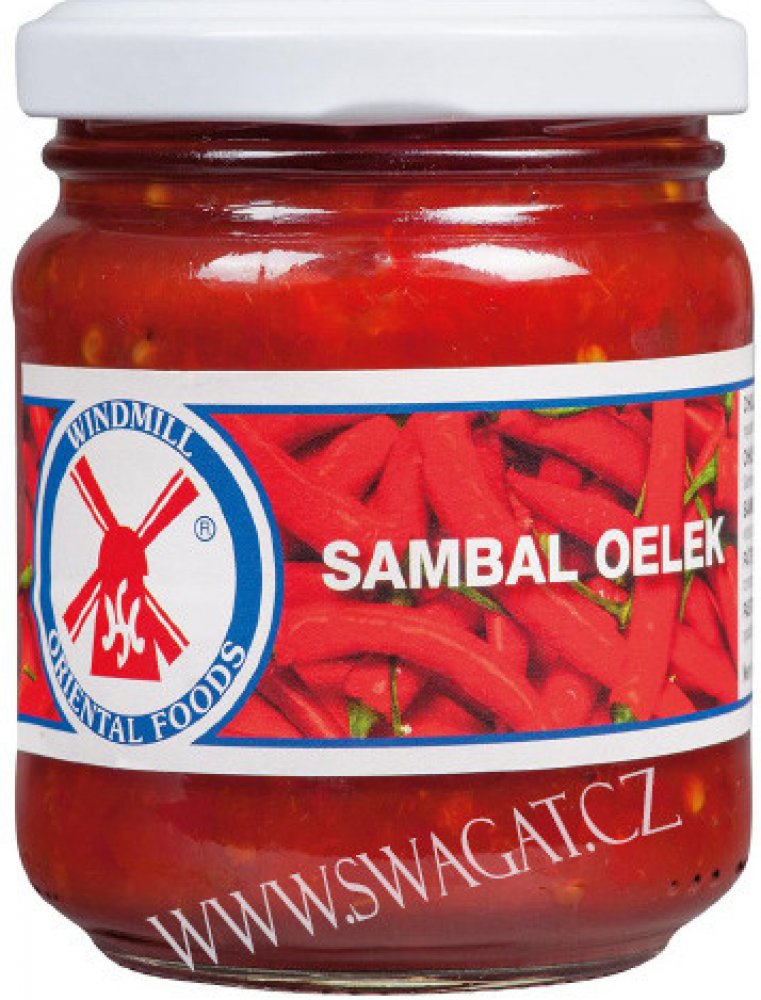 Sambal je chilli pasta pocházející z Indonésie a je velmi oblíbená v asijské kuchyni. Termín Oelek znamená drcení chilli papriček s paličkou a maltou. Sambal Oelek je pikantní jídlo nebo koření, které je oblíbené v mnoha zemích. Windmill Sambal Oelek se skládá z červených chilli papriček, soli a octa a je ideální pro ochucení všech druhů jídel. Sambal Oelek je tradičně podáván jako omáčka k namáče...