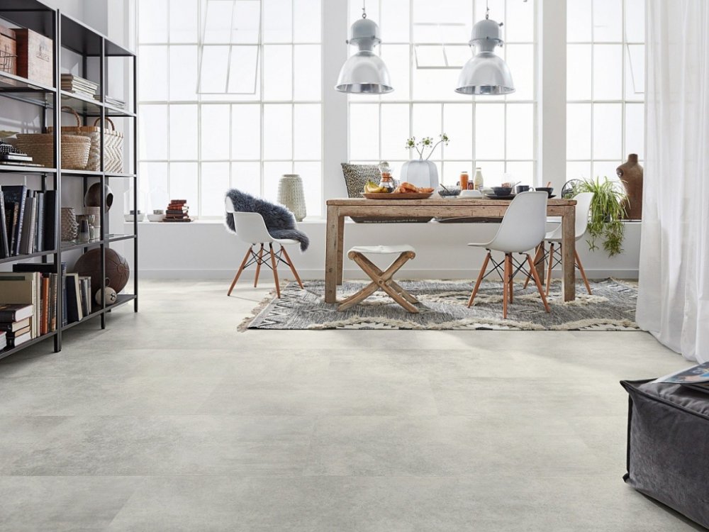 Skvělé pro kuchyně, chodby a kanceláře – odolá ruchu i kolečkovým židlím, a zároveň svým betonovým dekorem zútulní prostor.