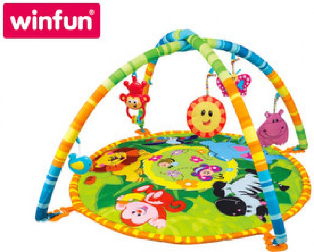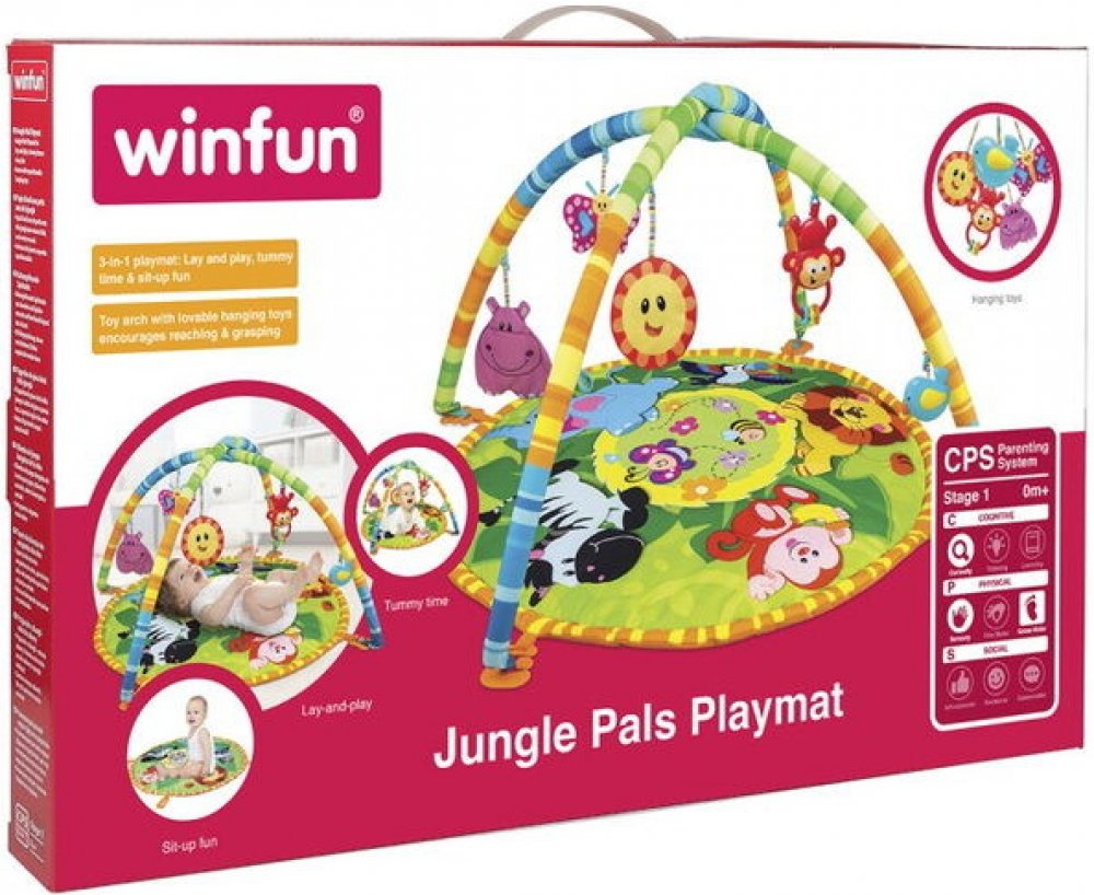 Hrací podložka Kamarádi z džungle skvěle zabaví miminko a podporuje jeho rozvoj. Motivuje k poznávání barev, tvarů a materiálů, a také k pohybu. Podložka je vhodná pro hraní na zádech, na bříšku i v sedě. Visací hračky lze snadno umístit na konstrukci upevněnou k podložce,